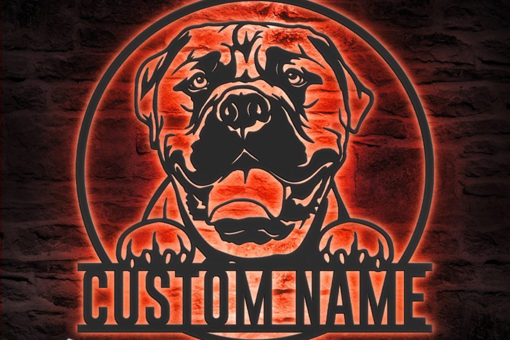 Be the first to review “Custom Bullmastiff LED Metal Art – Dog Lover Name Sign”