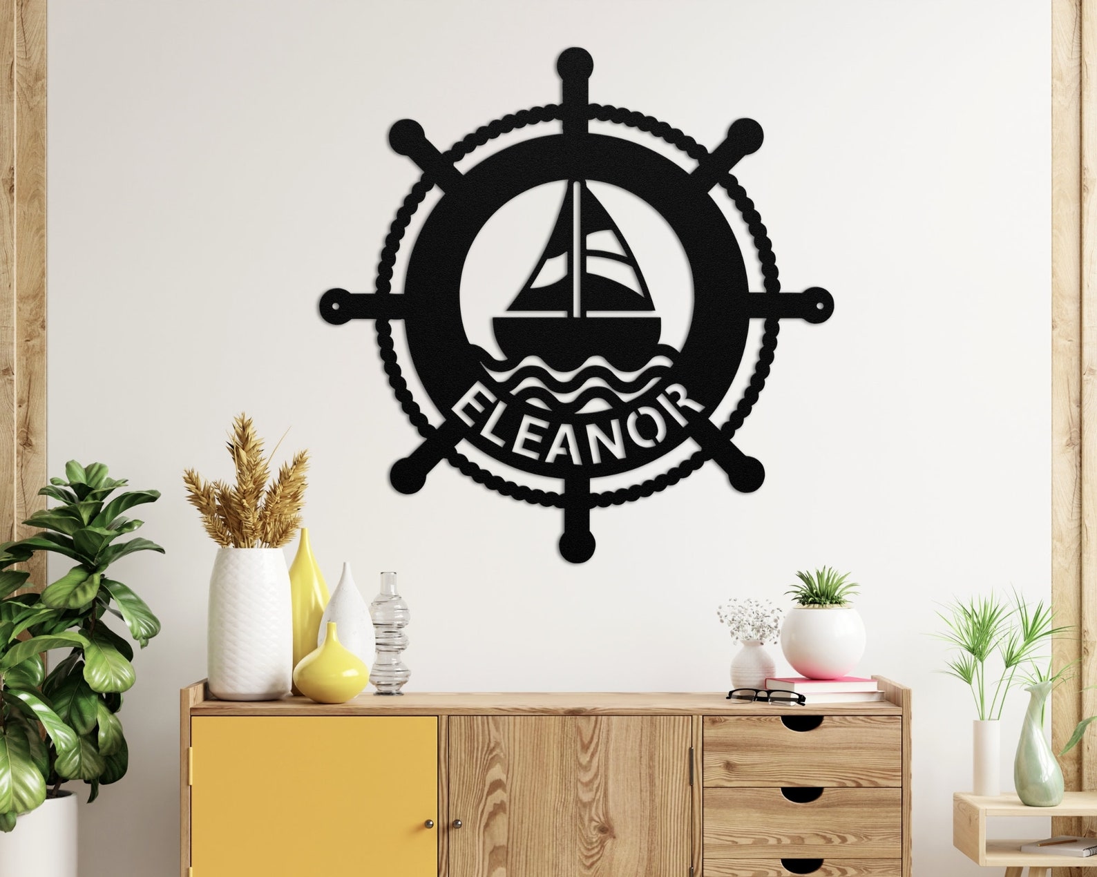 Customize your metal sign with the name, last name, initial letter and bottom text, and add information to the text box.