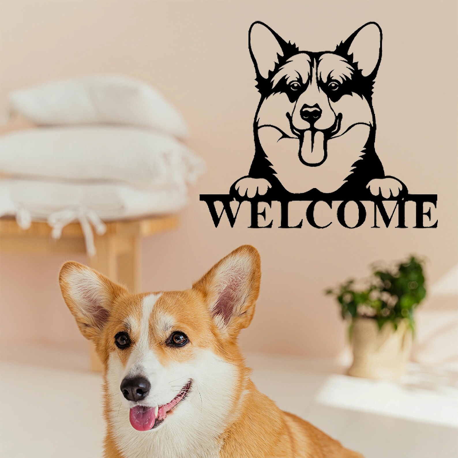 Personalize this adorable sign with your beloved Corgi9;s name and make it the perfect house address sign or dog welcome sign for your furry friend.