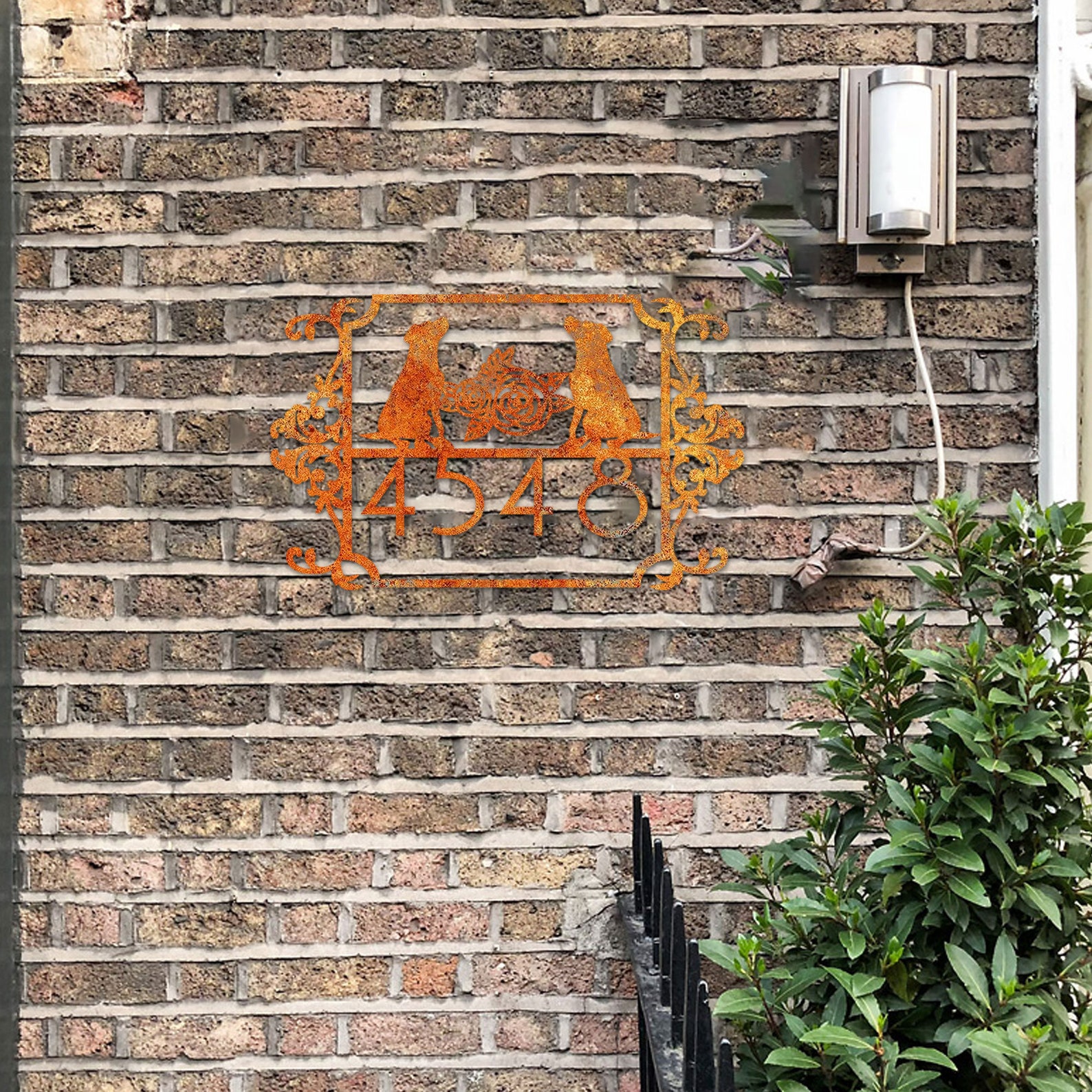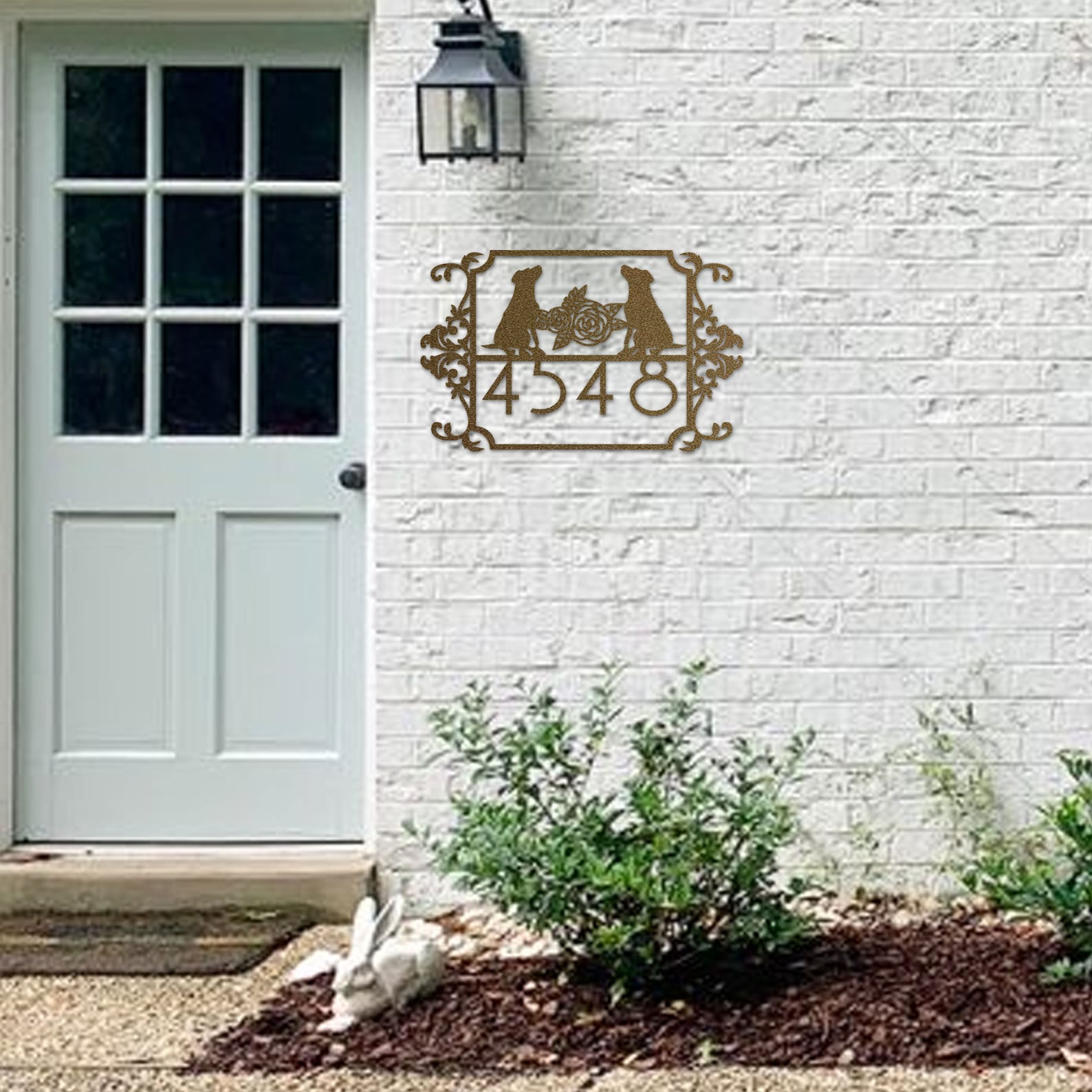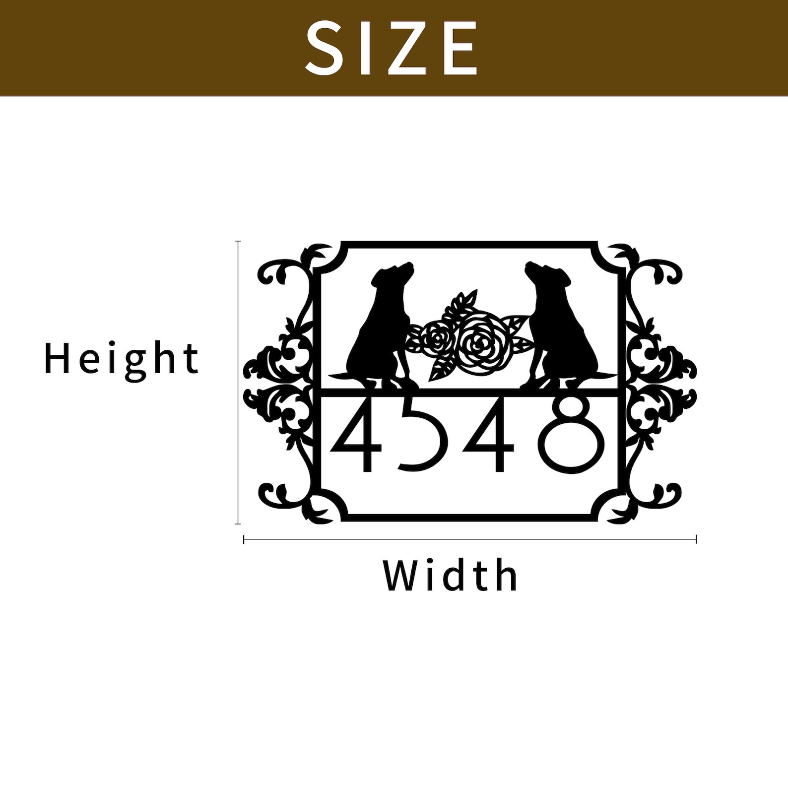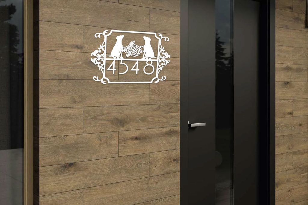 Custom Couple Dog House Number Sign, Horizontal Metal Address Sign, Dog Address Sign, Outdoor Number Plate, Housewarming Gift