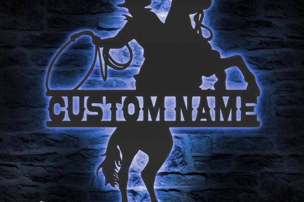 Be the first to review “Custom Cowboy Roping Metal Sign with LED – Rodeo Decor”