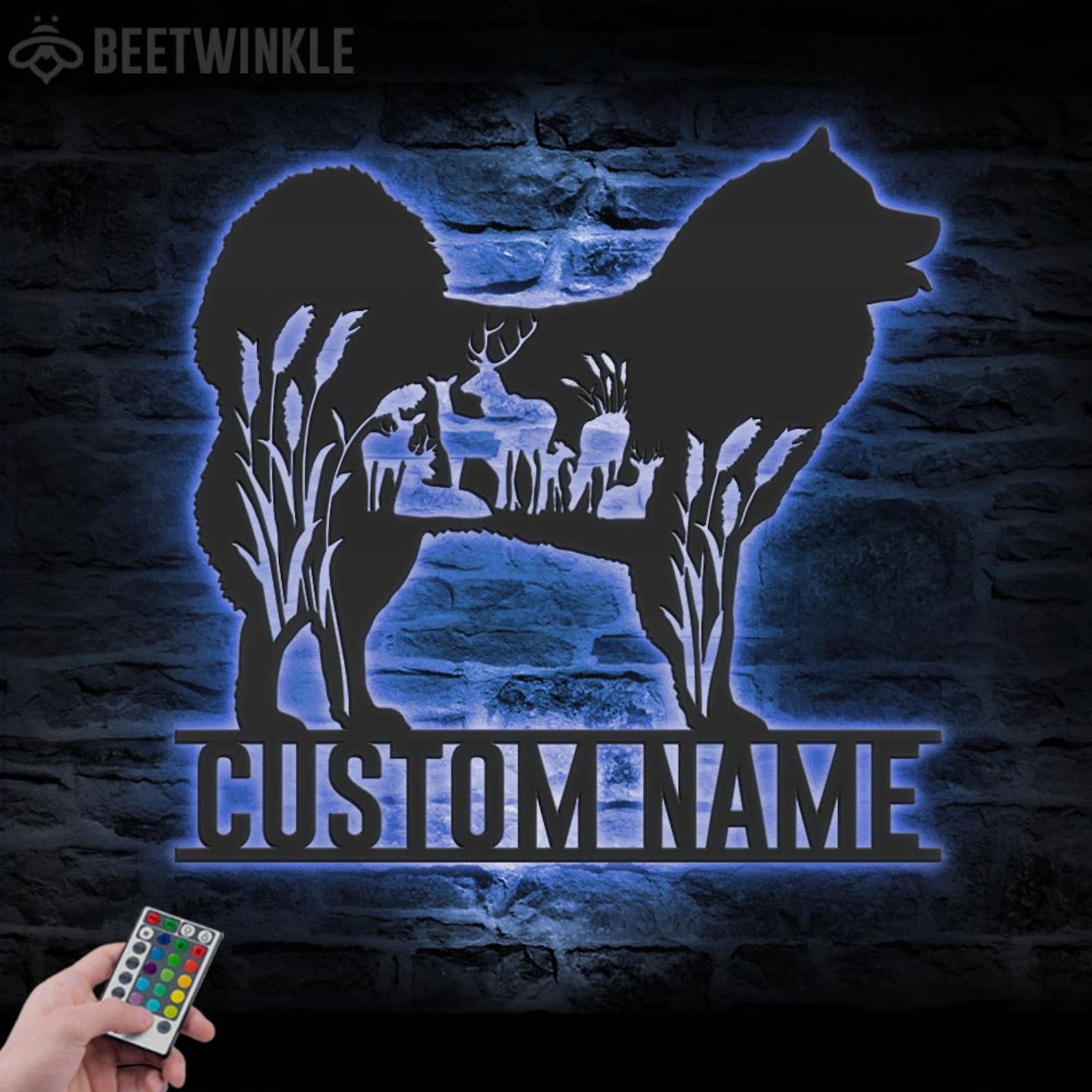 Be the first to review “Custom Deer Floral Eurasier Metal Sign with LED – Pet Decor”