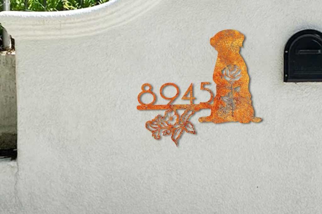 Custom Metal Pet Dog House Number Sign, Horizontal Metal Address Sign, Dog Address Sign, Outdoor Number Plate, Housewarming Gift.