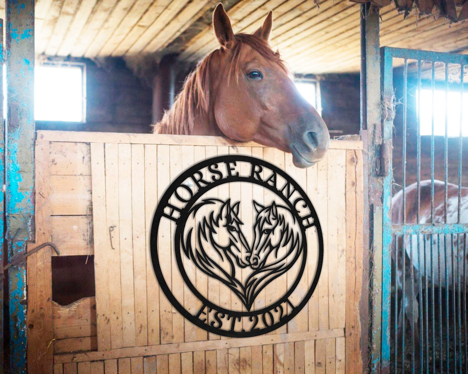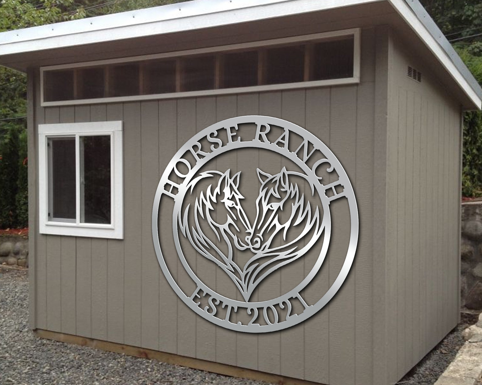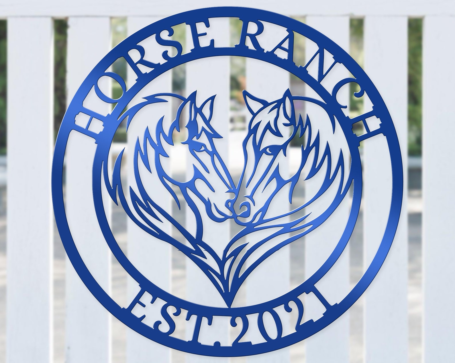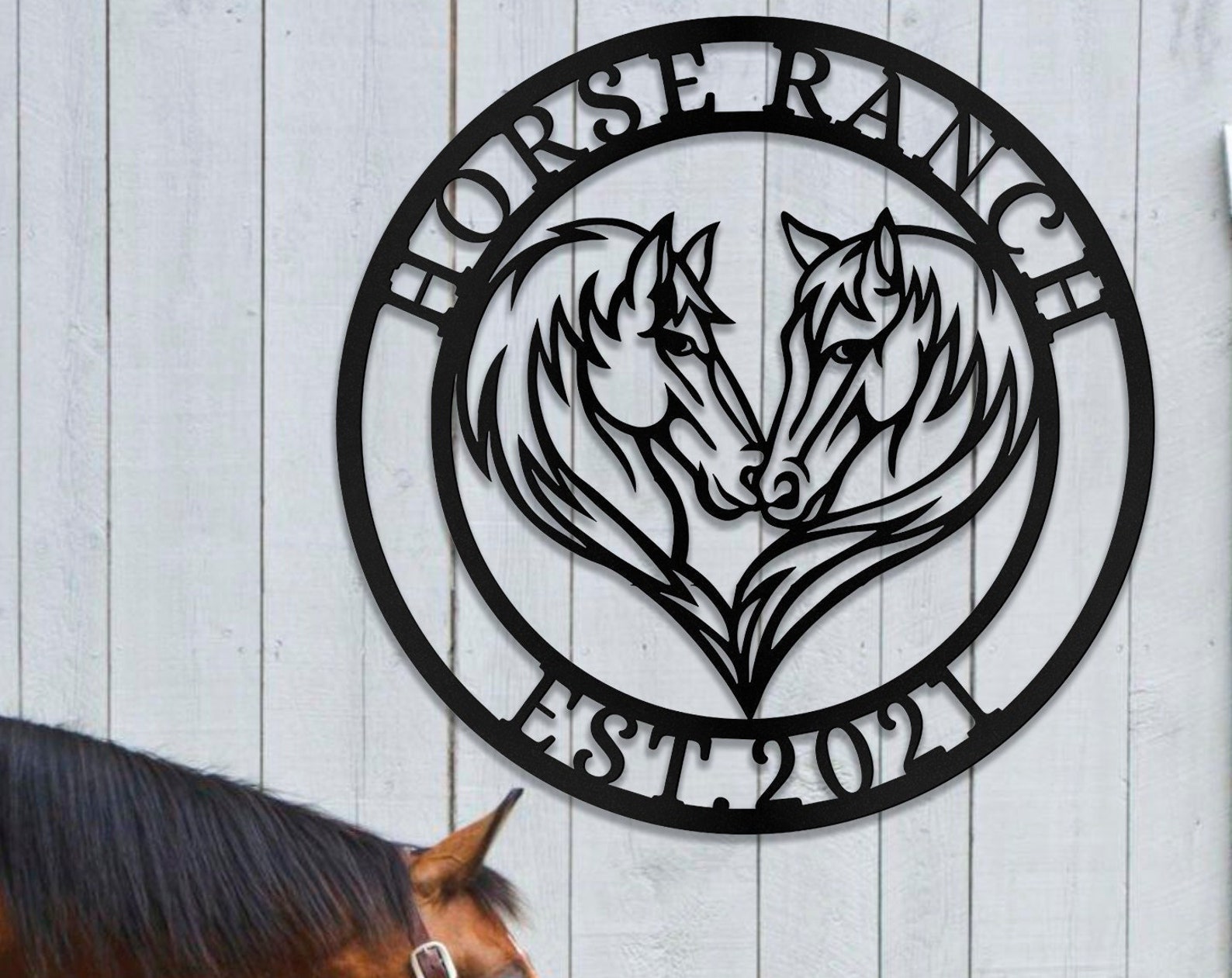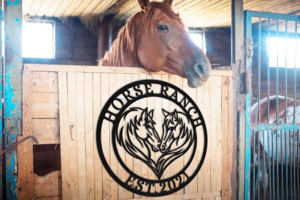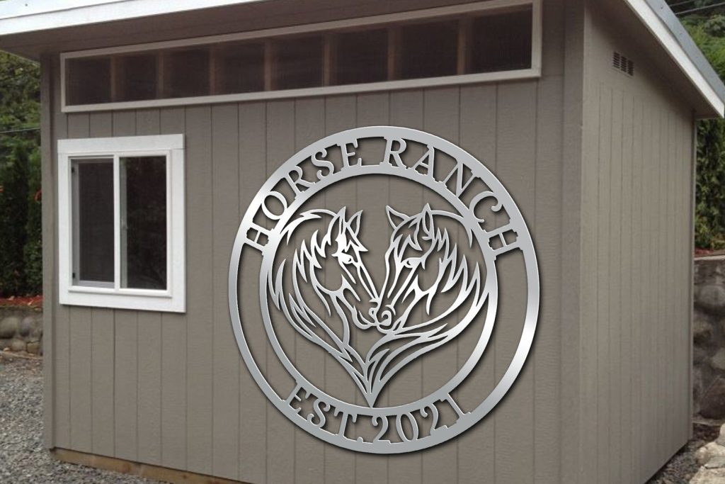 Be the first to review “Custom Double Horse Metal Sign – Eywa Ranch Decor”