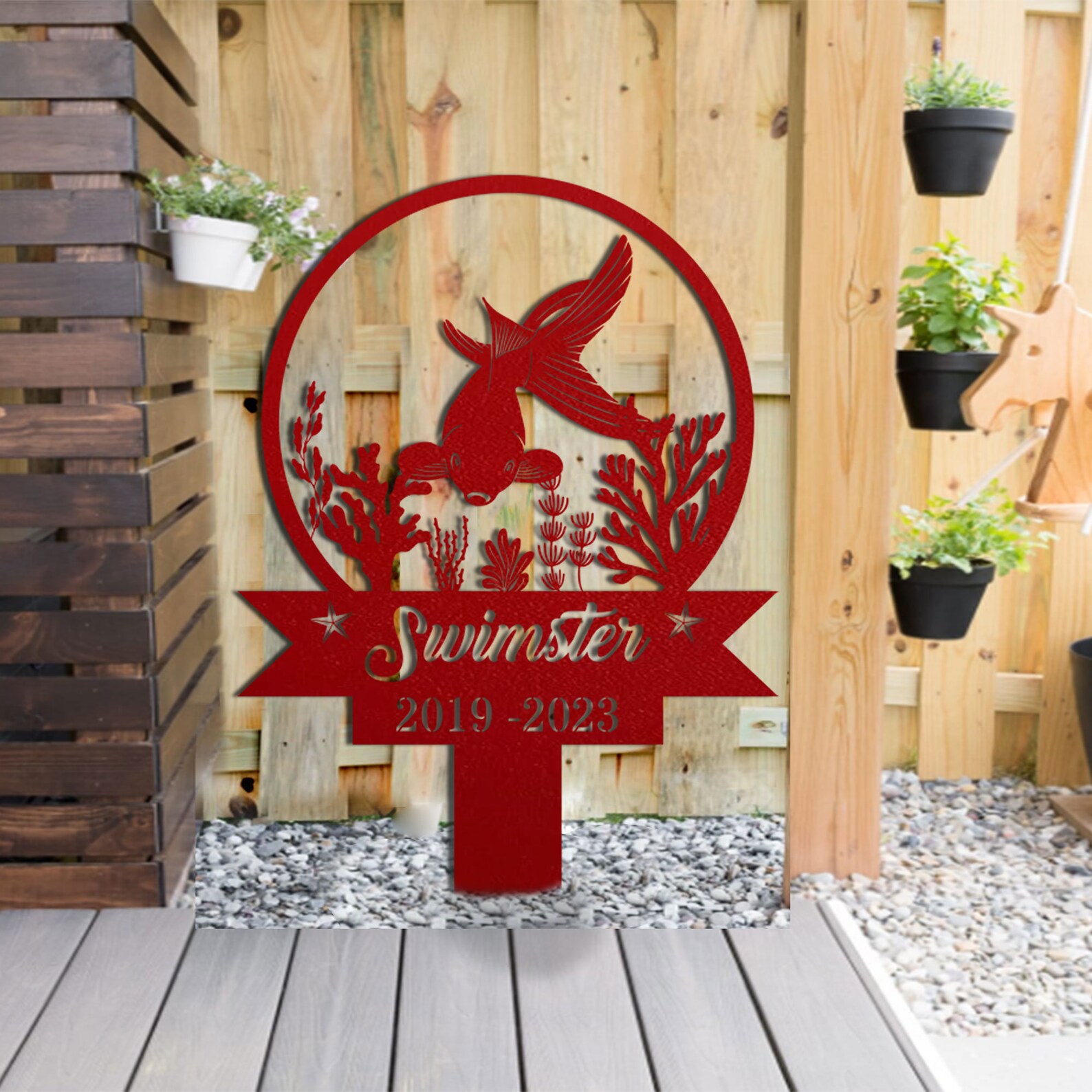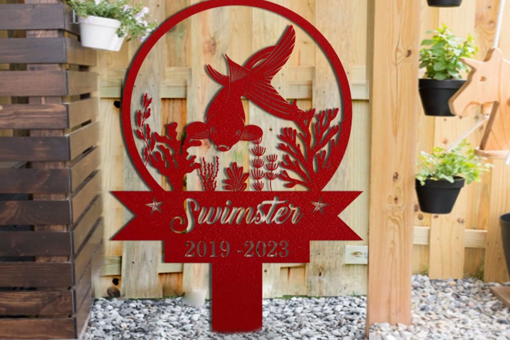 Custom Fish Pet Memorial Garden Stake,Personalized Grave Marker Stake,Fish Memorial Metal Sign,Yard Stake,Outdoor Fish Garden Decor