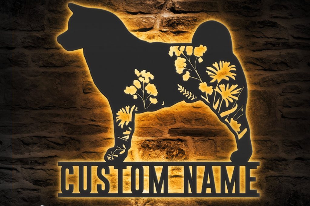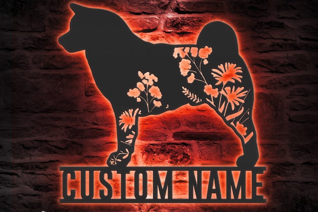 Be the first to review “Custom Floral Akitas Metal Wall Art with LED Light”