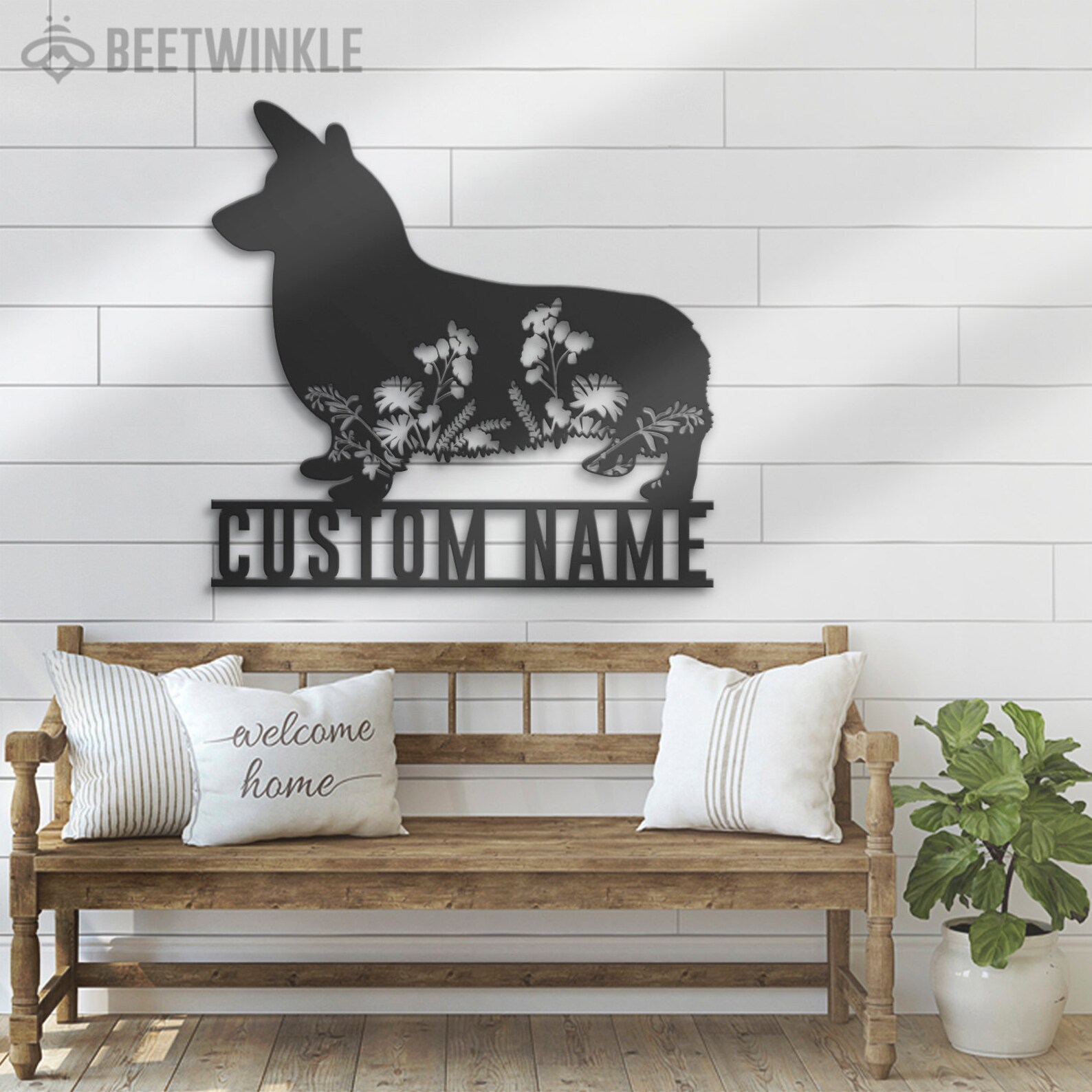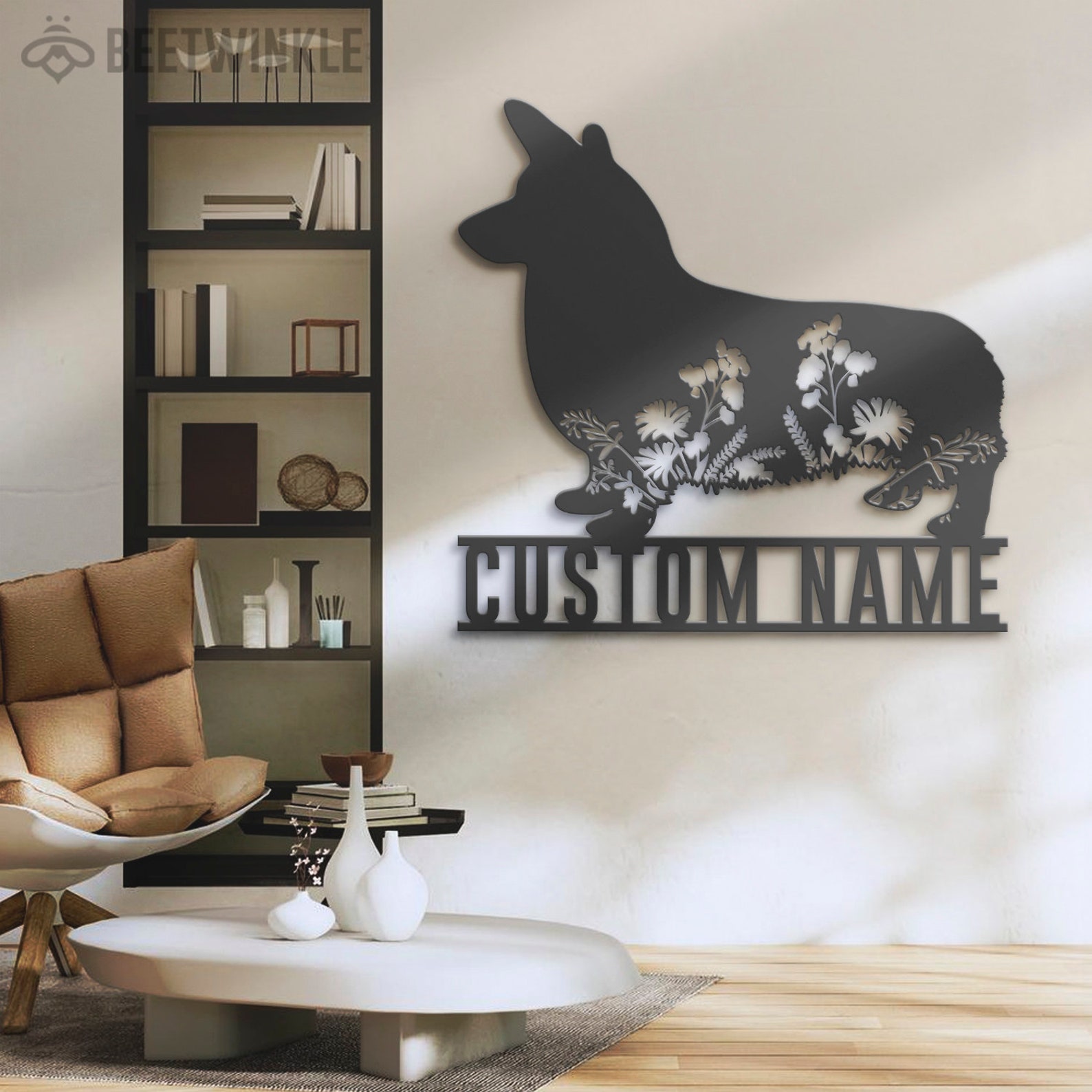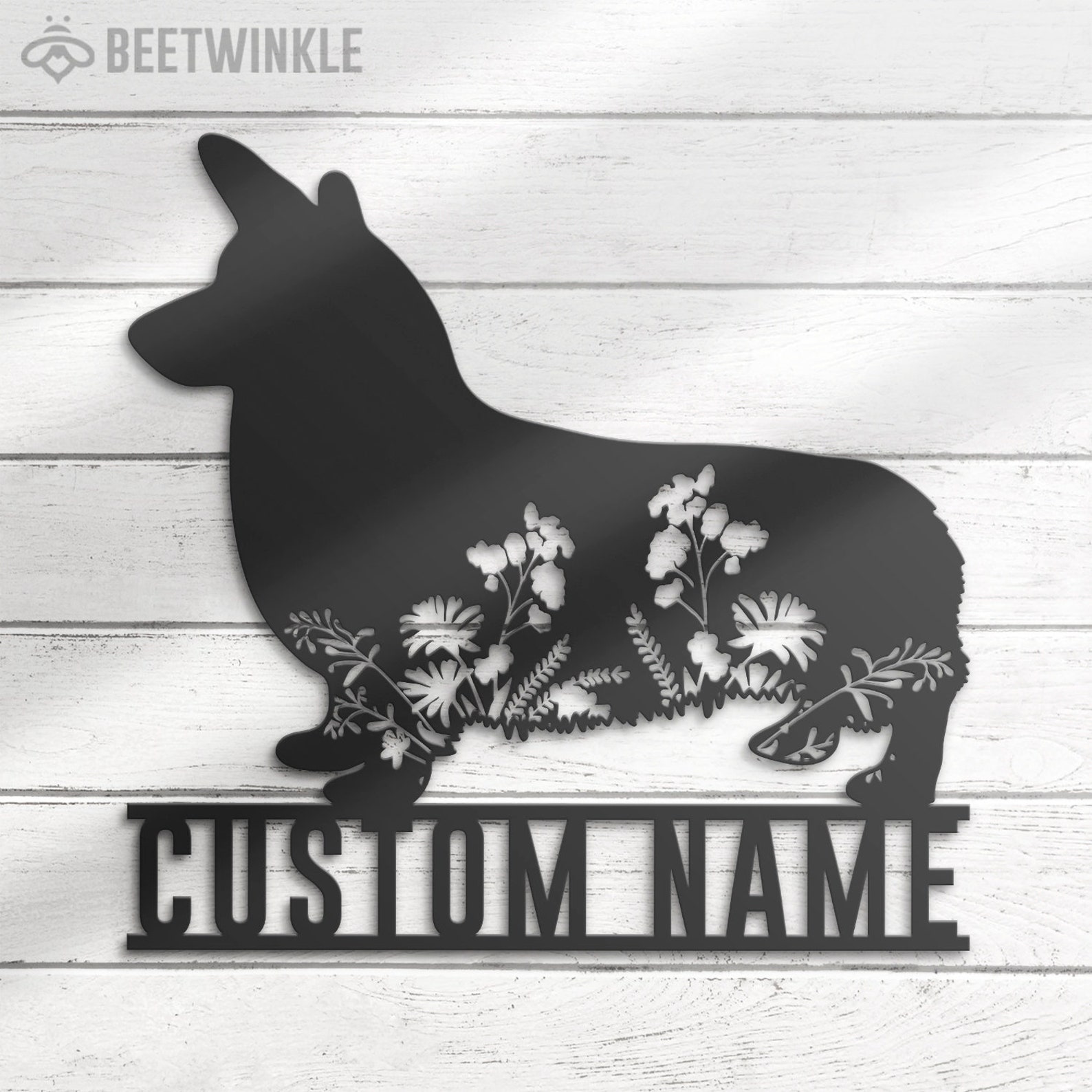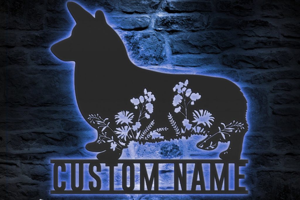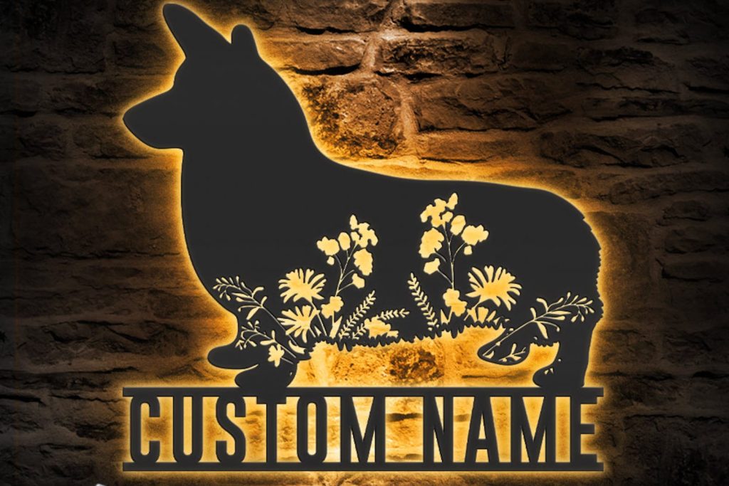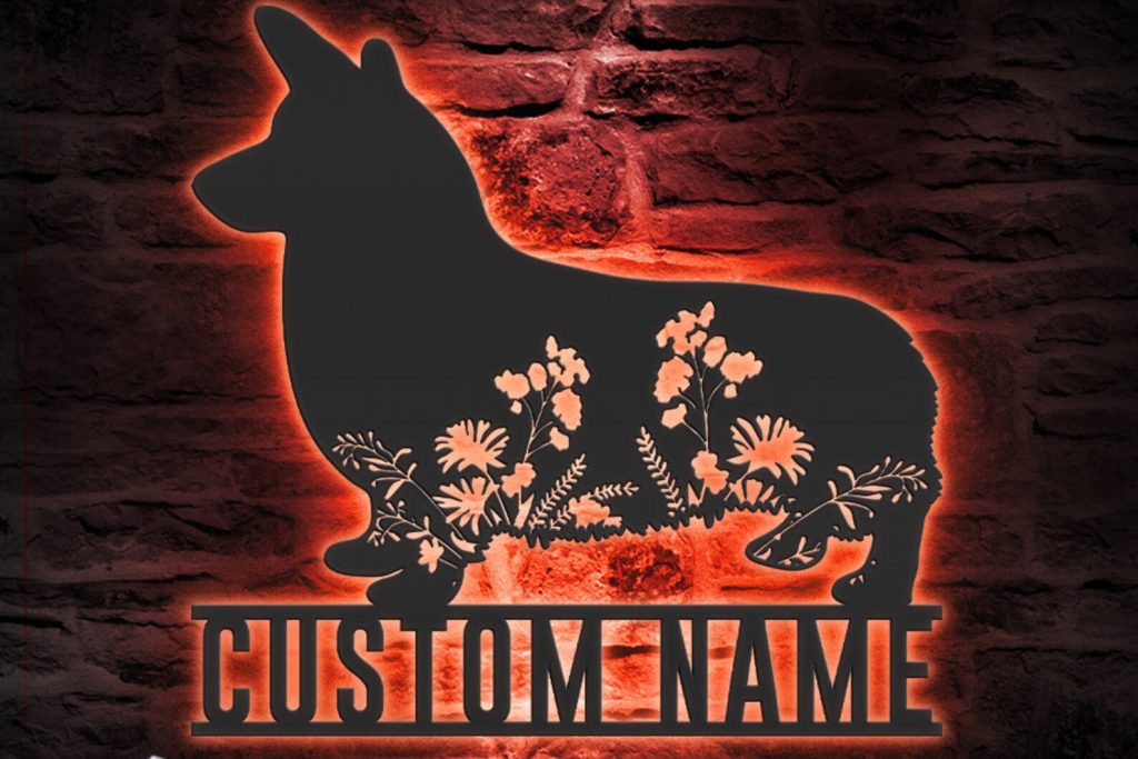 Be the first to review “Custom Floral Corgi Metal Wall Art with LED Light, Personalized Name Sign”