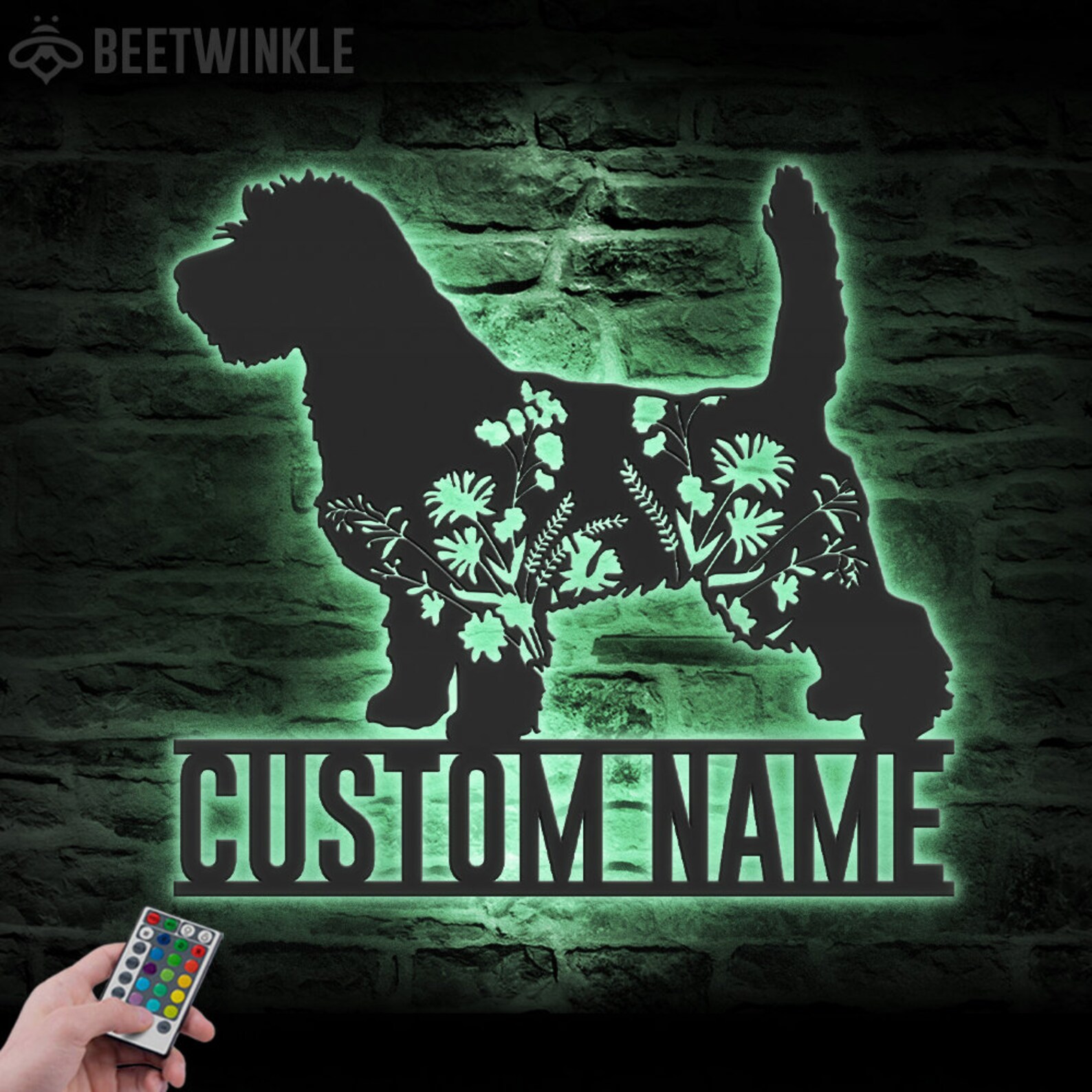 Custom Floral PBGV LED Metal Art – Dog Lover Name Sign