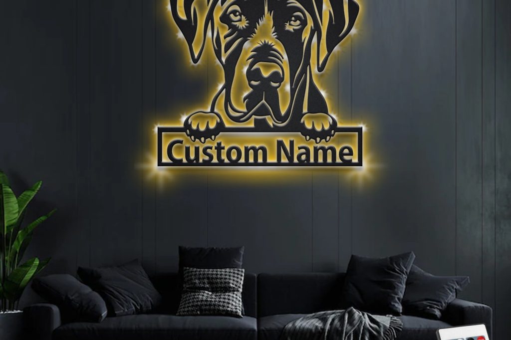Custom Great Dane Metal Sign with LED – Room Decoration