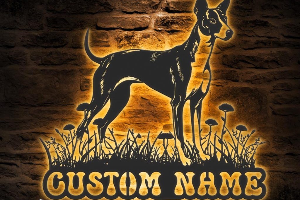 Custom Ibizan Hound LED Metal Art – Dog Lover Name Sign
