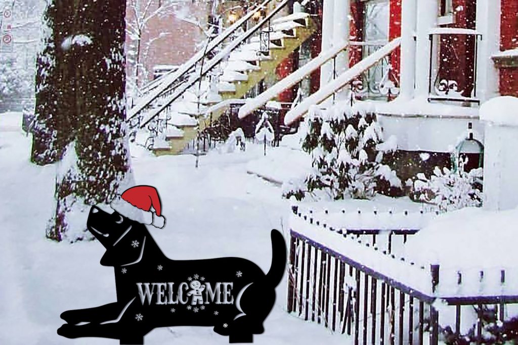 Christmas Dog Sign, Christmas Decor, Labrador Metal Sign, Rusty Metal Stake, Vintage Sign, Holiday Gift, Yard Decoration, Christmas Yard Art, Meaningful Christmas decorations, Christmas gifts, family gifts, Labrador pet lovers, metal signs for animals.