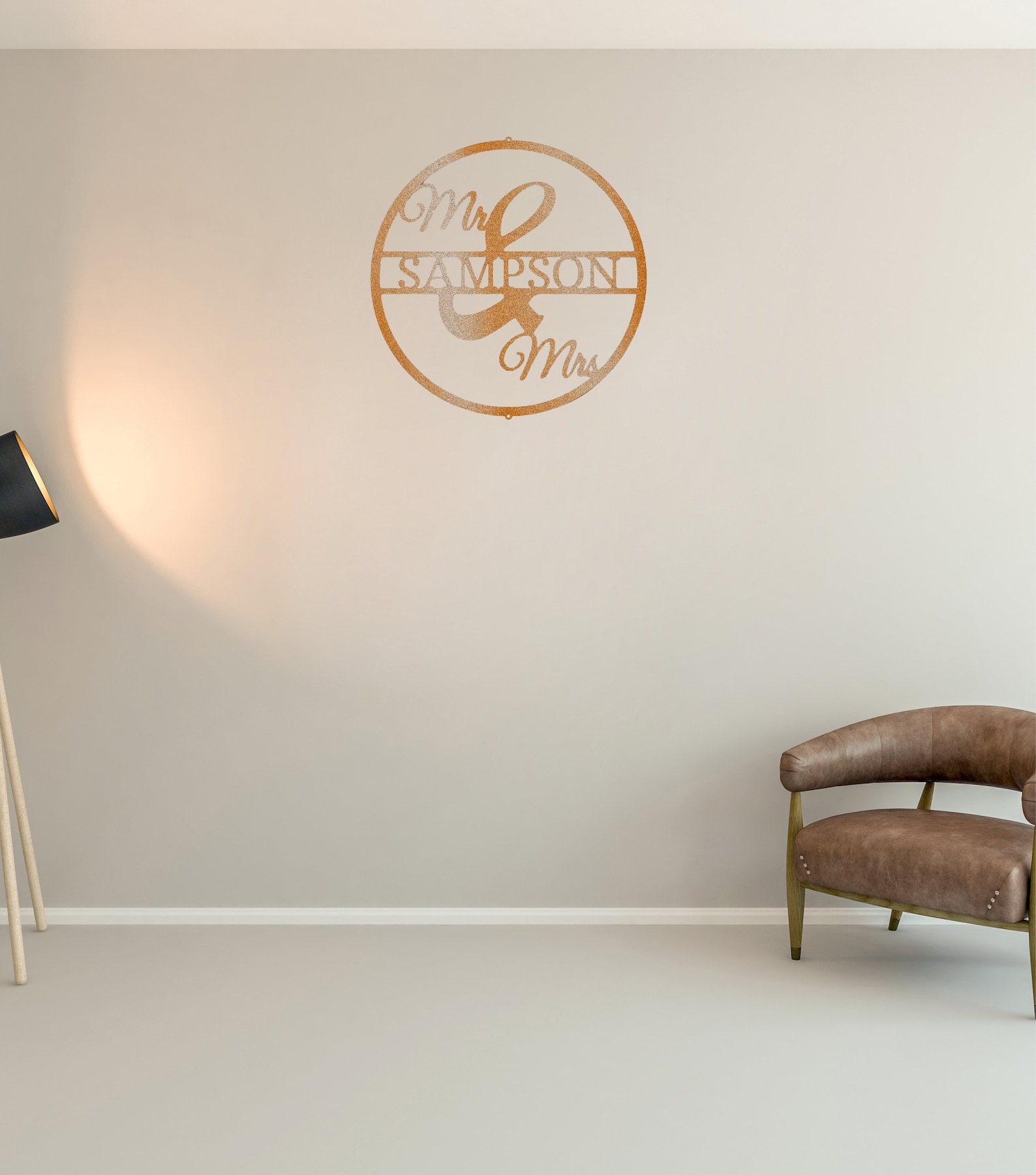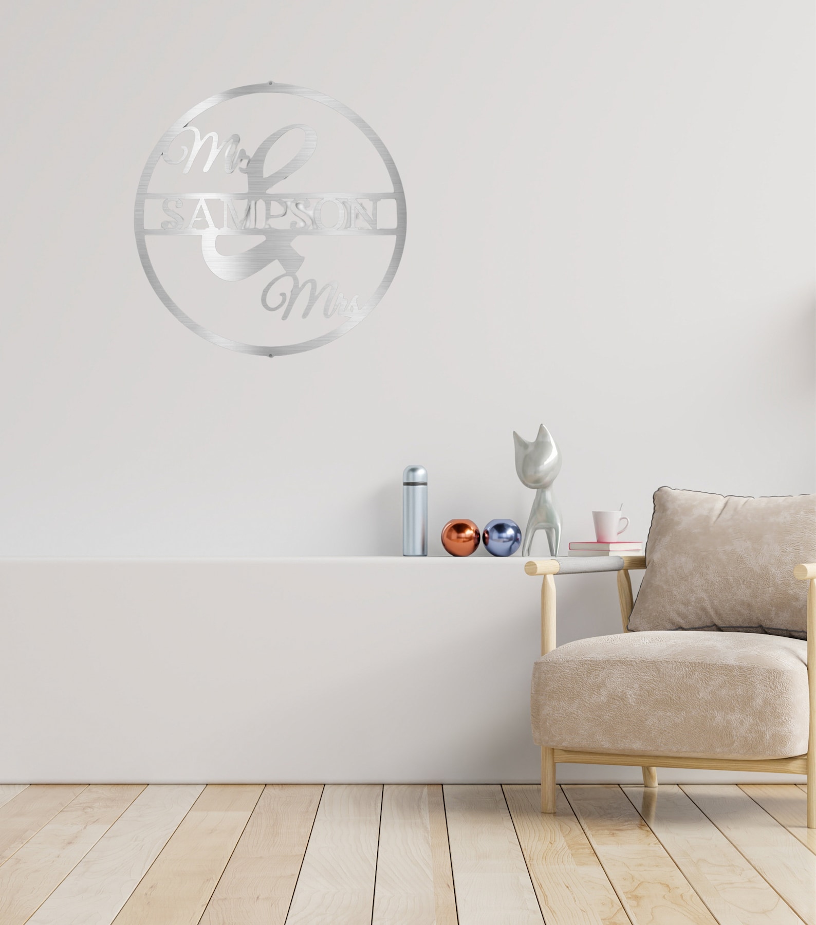 Custom Mr. & Mrs. Circle Monogram Metal Sign – Wedding Gift