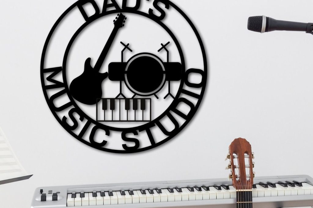 Personalized Music Room Sign, Custom Music Studio Signs, Gifts for Him, Fathers Fay Gift, Home Decor for Musician & Bands, Music Lover Gift, Music Recording Studio Sign – Audio Producer/Engineer Plaque, Personalized Guitar Pick Metal Wall Art, Christmas Gift For Son, Daughter, Birthday Gift, Nursery Decor, Personalized Wood Sign, Music Gift, Electric, Acoustic, Bass Guitar, Colored Metal Guitar Sign, Metal Musical Instrument Sign