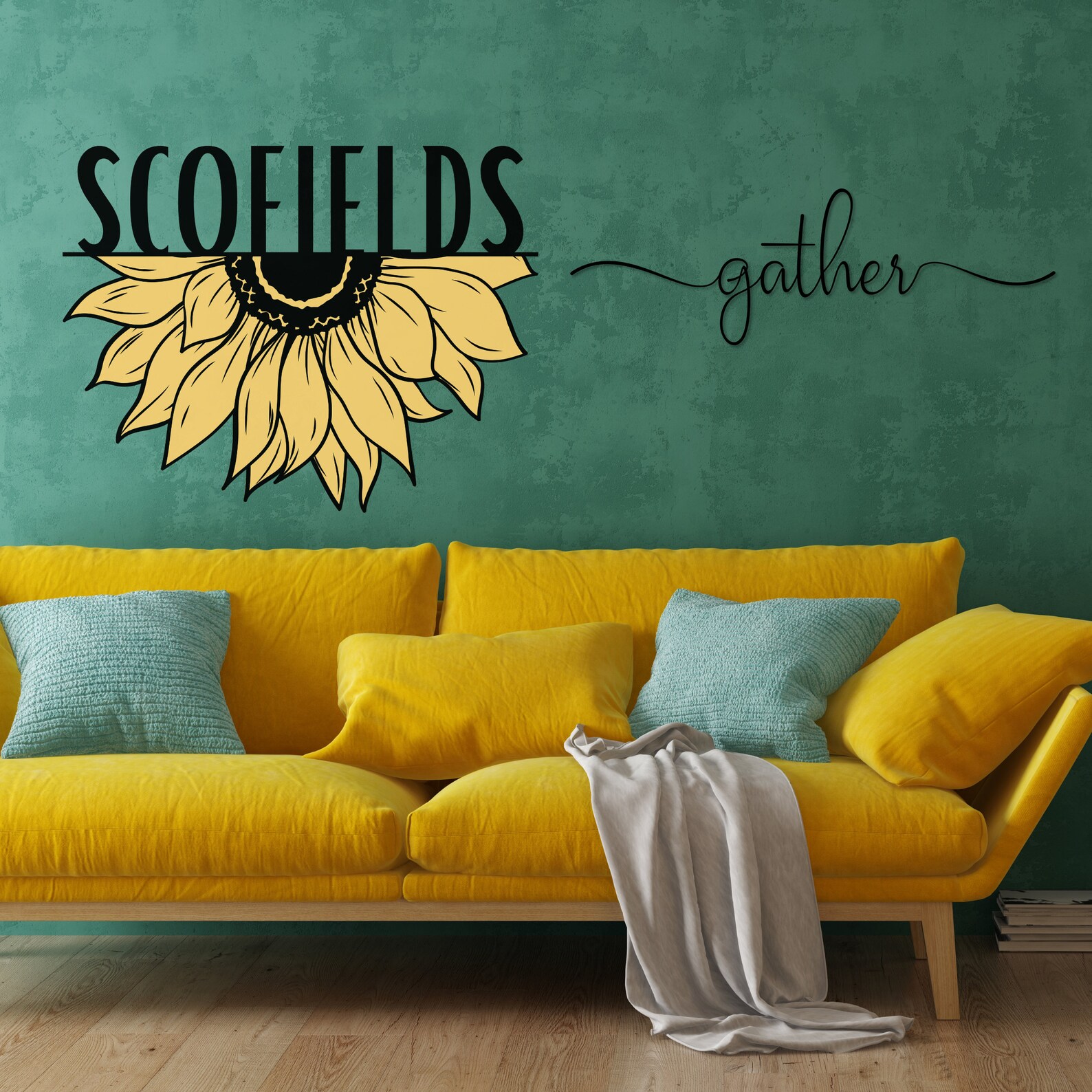 Elevate your home decor with our stunning Custom Name Metal Sign adorned with a vibrant sunflower design. This charming wall art piece allows you to add a personal touch by selecting your preferred names, text, or house numbers. You also have the choice of placing the split sunflower design either at the top or bottom of the text. This versatile sign is perfect for front door hanging, making it a thoughtful gift for housewarmings, weddings, anniversaries, or as a charming addition to your garden.