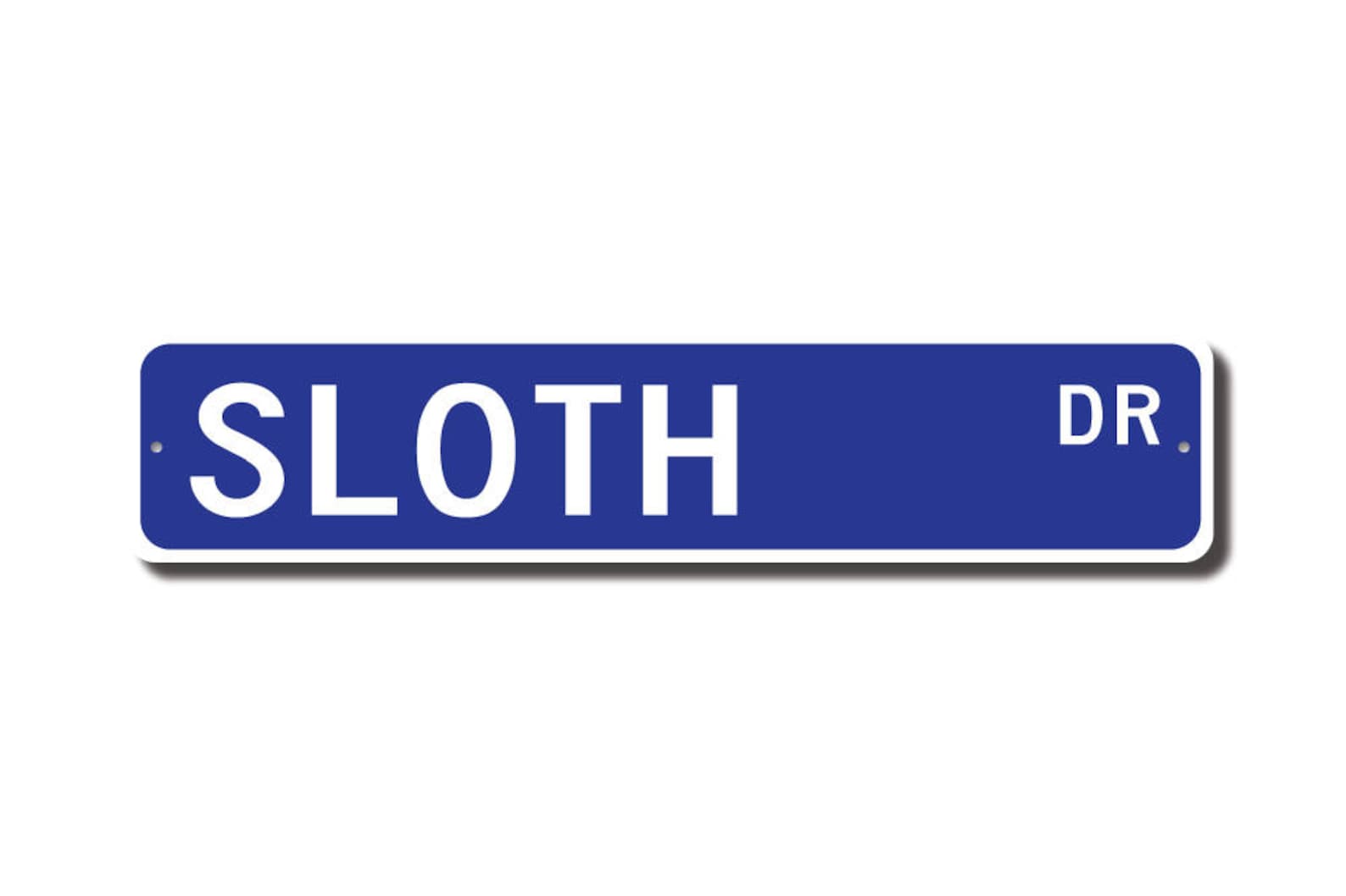 Sloth lovers check out this awesome street sign! This will make the perfect piece for any Sloth lover, or maybe you are a Sloth fan looking for a cool decor piece. Made of premium aluminum it will stand the test of time. This sign will look great in any room, home den, cave, or office! Get this sign for your favorite Sloth aficionado !