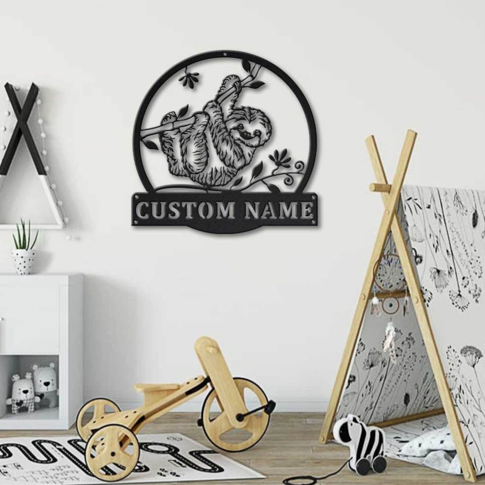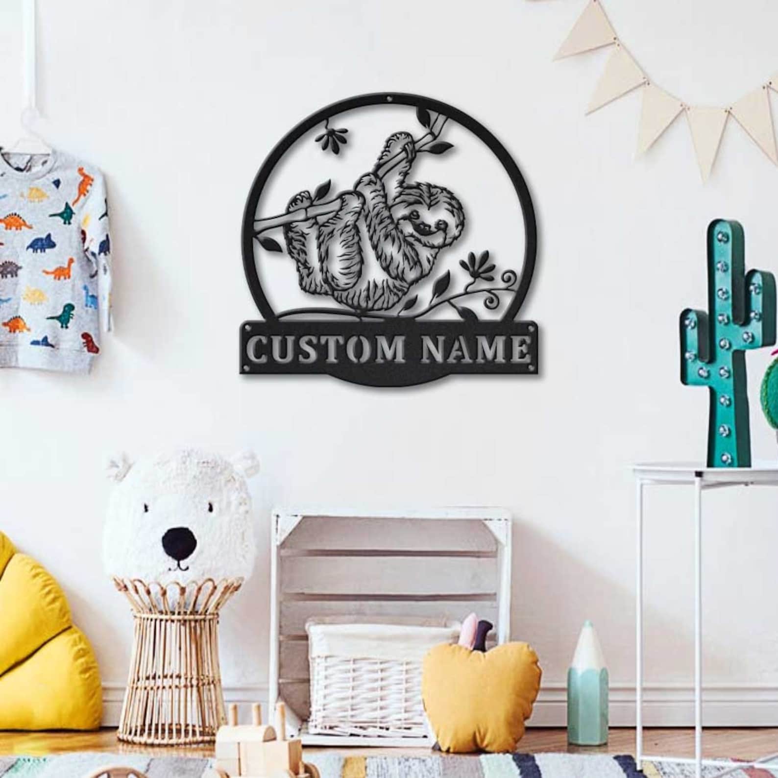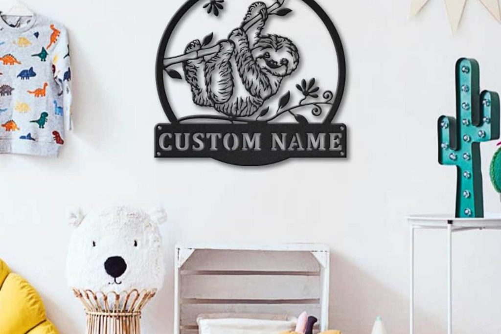 Be the first to review “Custom Sloth Monogram Metal Sign – Kids Room Decoration”