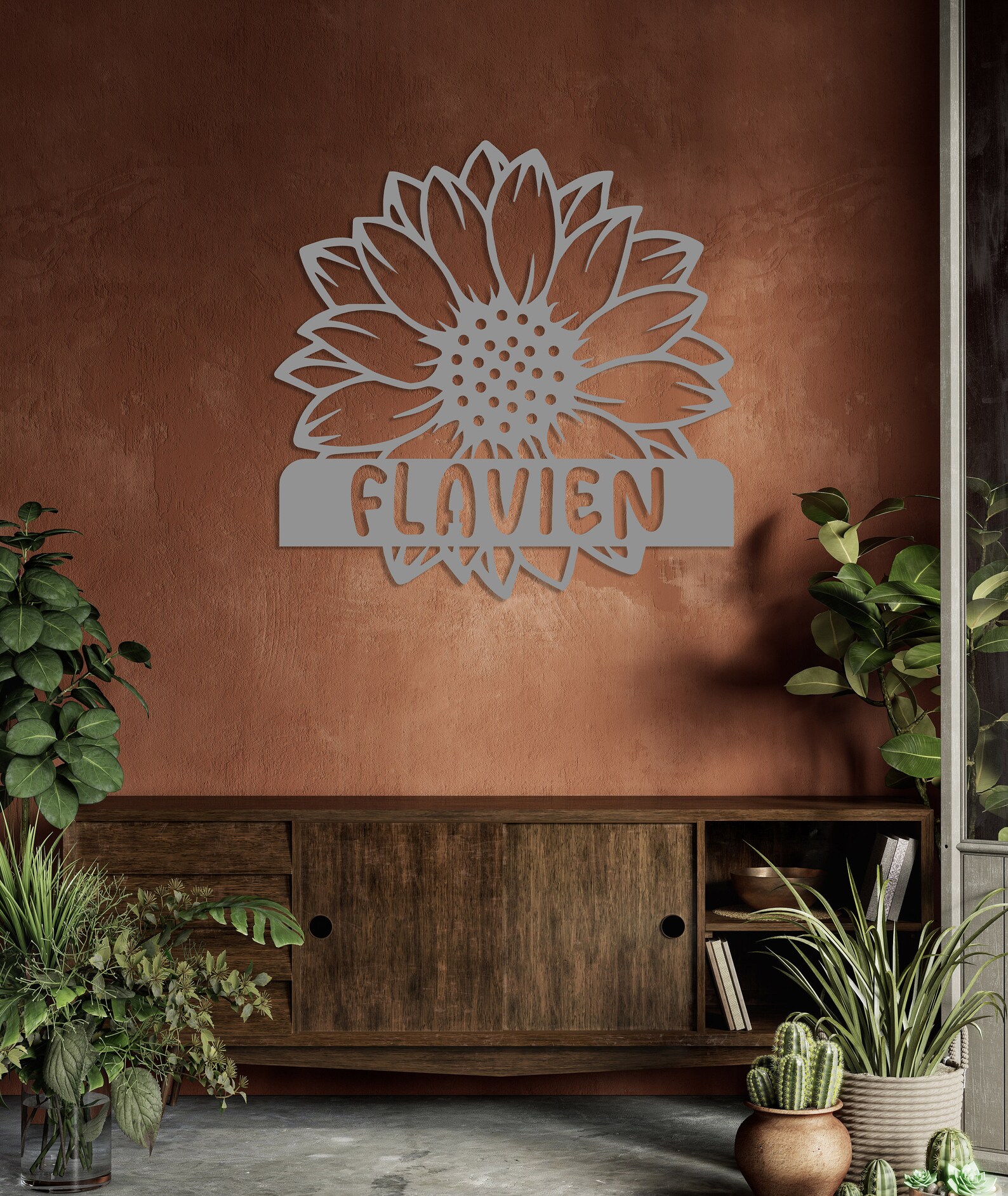 Custom Sunflower Metal Sign, Personalized Sunflower Name Sign, Flower Wall Decor, Outdoor Decor, Custom Gift, Home Decor, Sunflower Monogram
