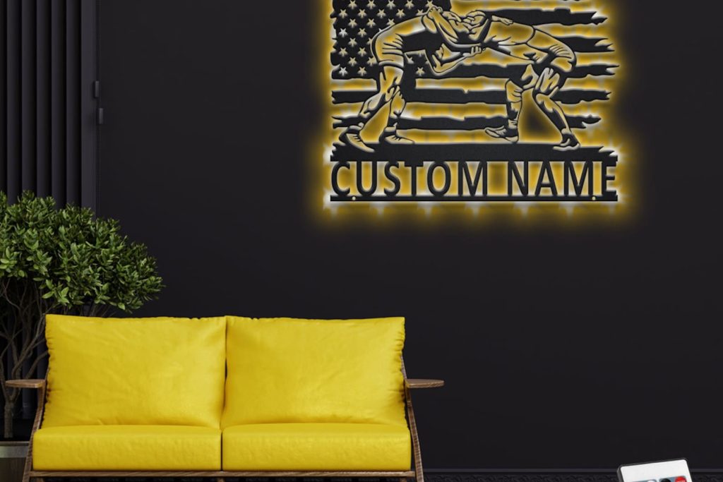 Custom US Wrestling Metal Sign with LED – Player Decoration
