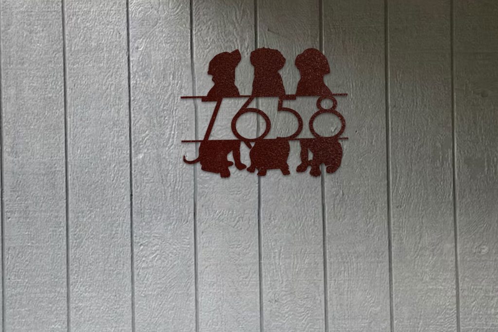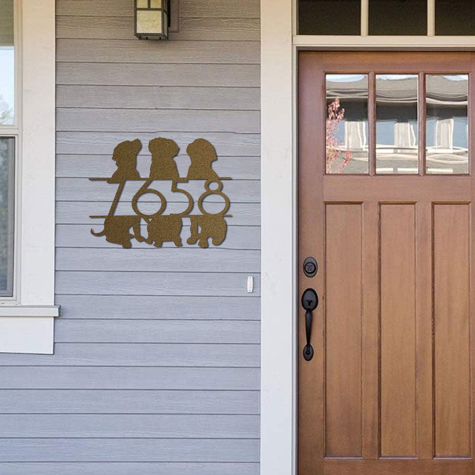 Custom 3 Dogs Metal House Number Sign, Horizontal Metal Address Sign, Dog Address Sign, Outdoor Number Plate, Housewarming Gift ,Animal Lover Gift, Personalized Gift, Metal Dog Plate