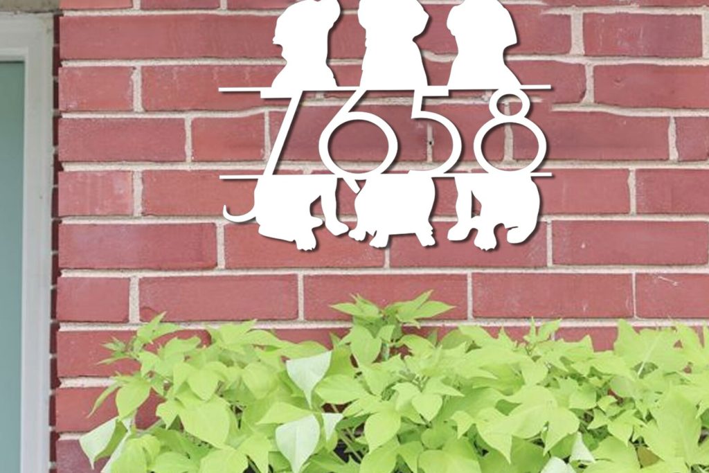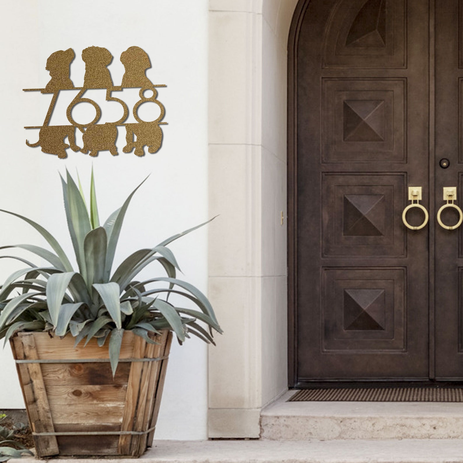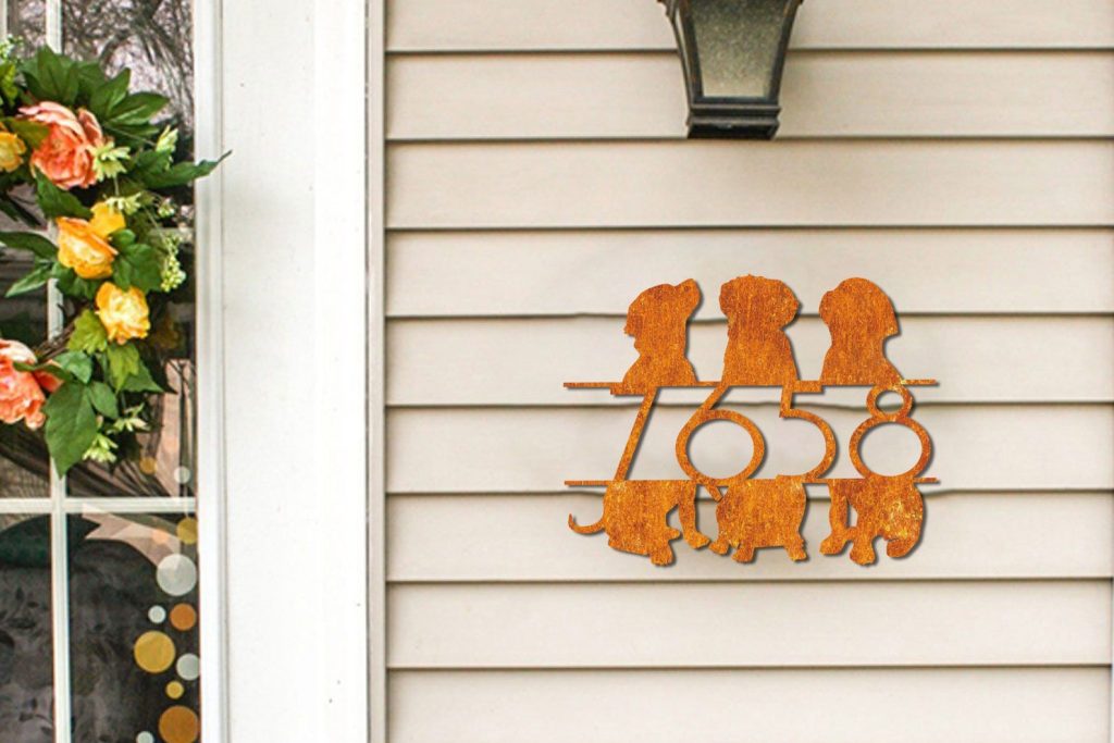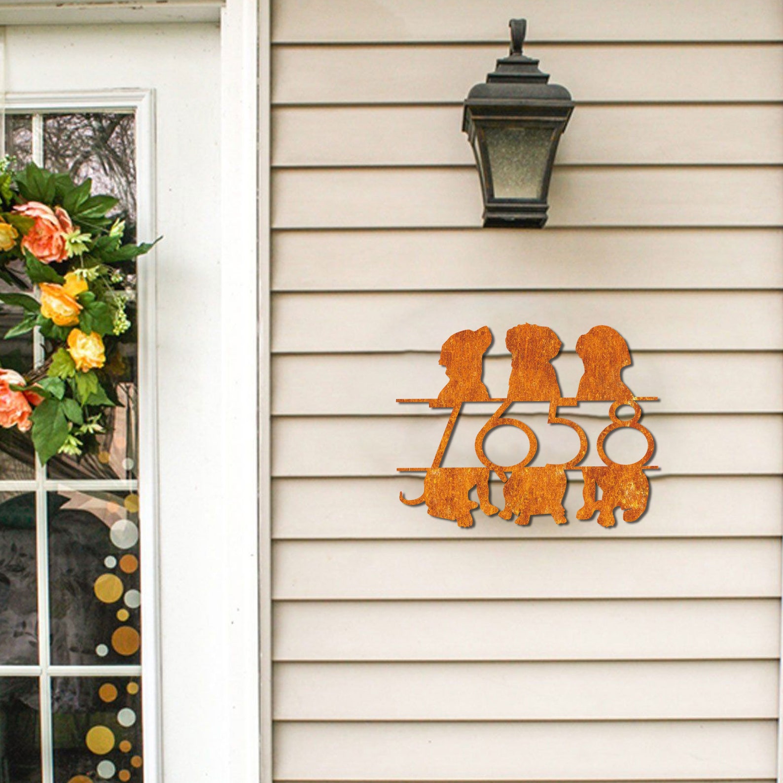 Personalized Outdoor Number Plate, Vertical Metal Dogs Address Sign, Custom Dog Metal House Number Sign, Dog Address Sign, Housewarming Gift