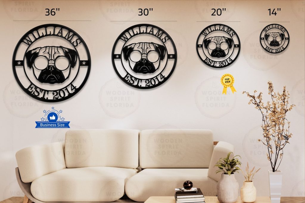Cute Pug Dog Art Decor – Personalized Name Wall Sign, Custom Metal Monogram