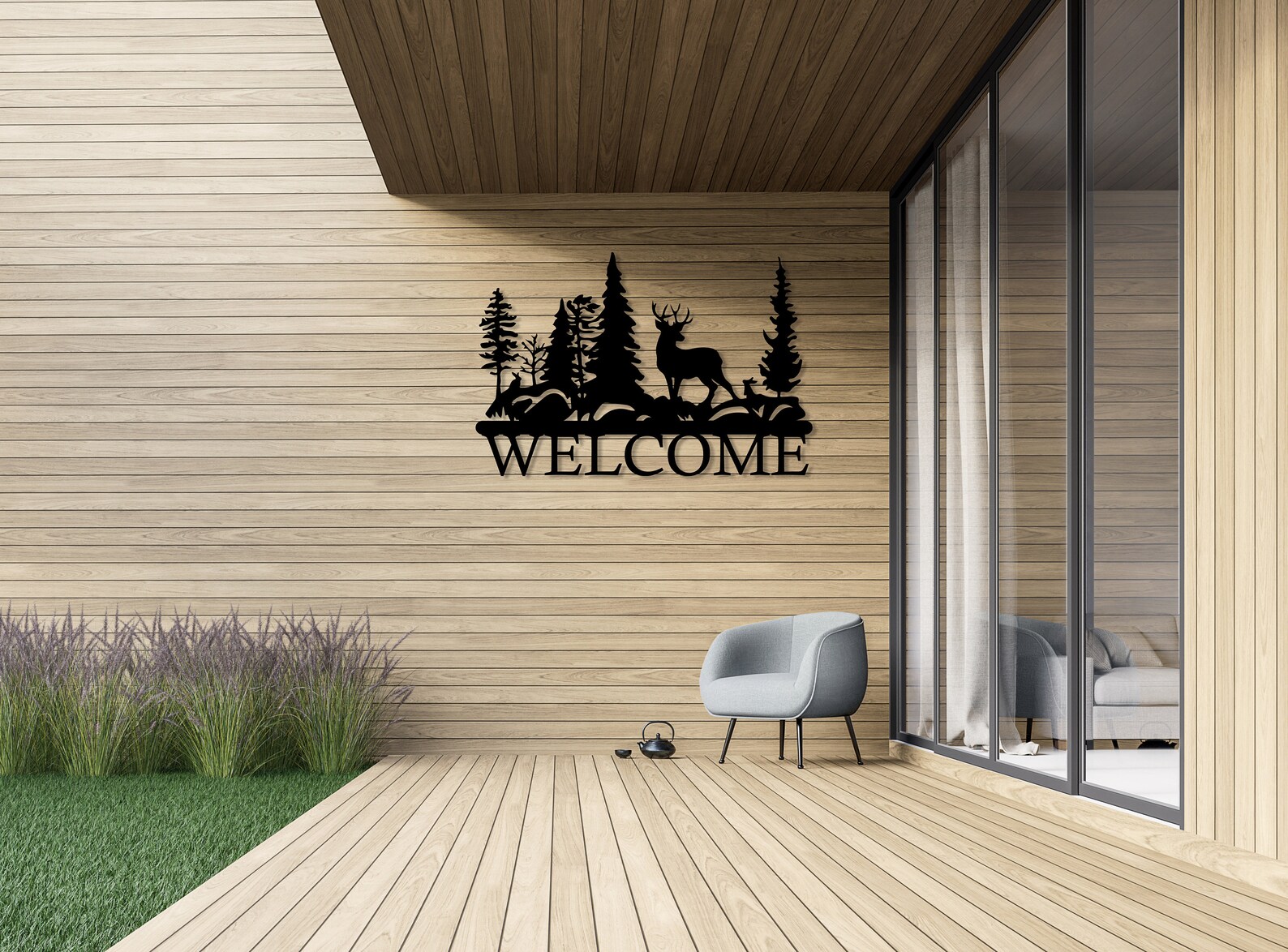 Metal Welcome Sign,Large Nature Decor, Tree with Deer Sign, Entrance door Sign,Unique Home Decor, Farmhouse Decor, Gate Wall Sign,Home Gift, Pine tree sign, Tree Sign, Metal Tree Decor, Metal Deer Sign,Housewarming Gift, Home Decor- Wall Art- Metal Wall Hangings – Custom Metal Works – Best Gift Ever – Unique Gift, Wall Hangings, Gift for Him, Personalized Sign, Gift for Her, Living Room Decor, Bedroom Decor, Metal Sign, Entrance Decor, Wild Sign,