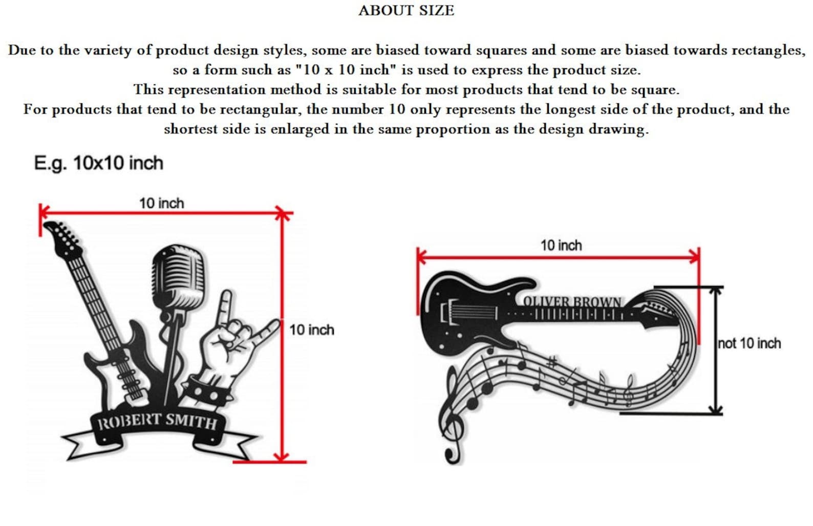Due to the variety of product design styles, some are biased towards squares and some are biased towards rectangles, so a form such as "10 x 10 inch" is used to express the product size. This representation method is suitable for most products that tend to be square.
