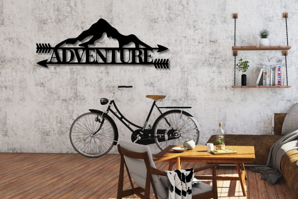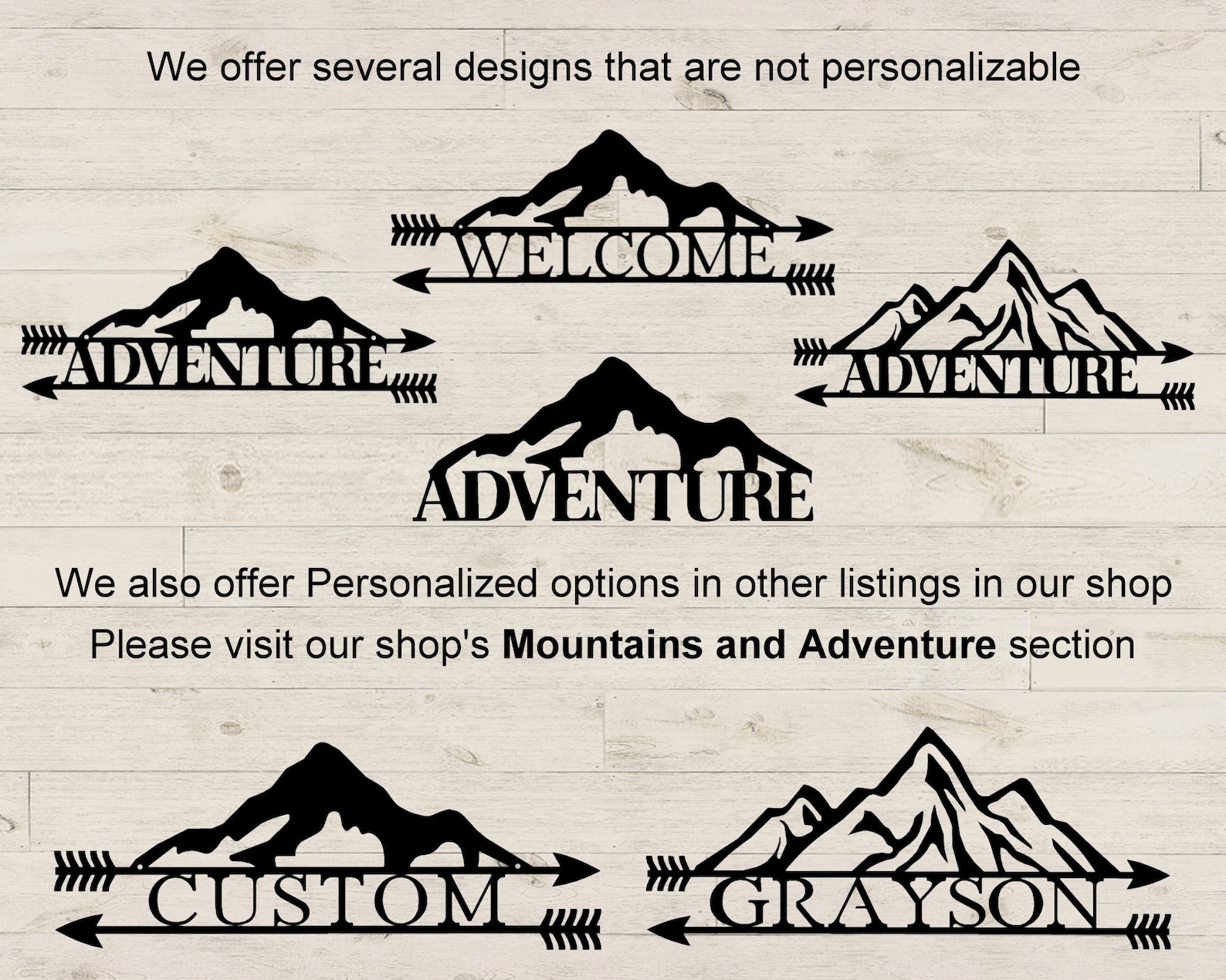 Double Arrow Mountain Range Adventure Sign. This Rustic metal wall decoration will make a great Wedding, Anniversary, or Christmas gift. Adventure awaits a great wall hanging as part of your farmhouse decor or some metal words of inspiration to hang just about anywhere you9;d like : )