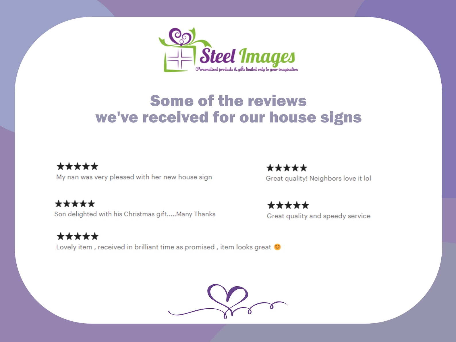 A British made, high quality house plaque, featuring a unique design. Premium quality, durable and suitable for inside or outside this powder coated sign is the perfect way to clearly identify your house name, number, or both.