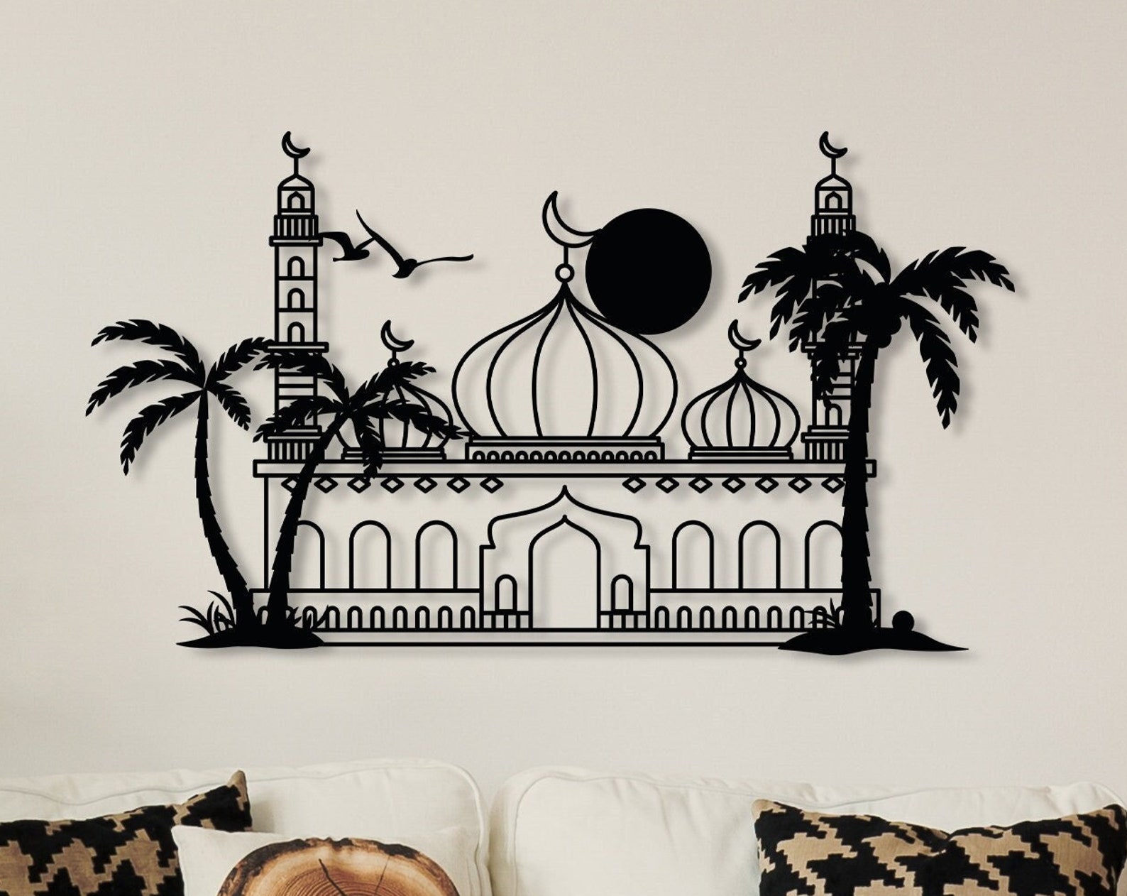 This metal wall hanging is designed for your modern home decorating. As distinctive point from other metal wall signs our 2d dimension looking metal wall decors are unique home decor products.As the metal wall art stands 2 cm away from the wall you hang on,you will have natural sunshine or lighting passing through.
