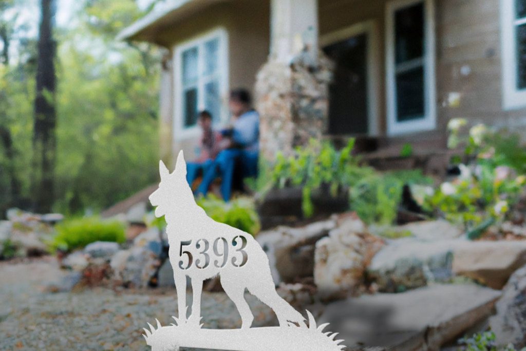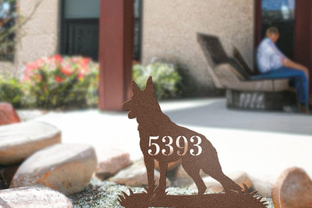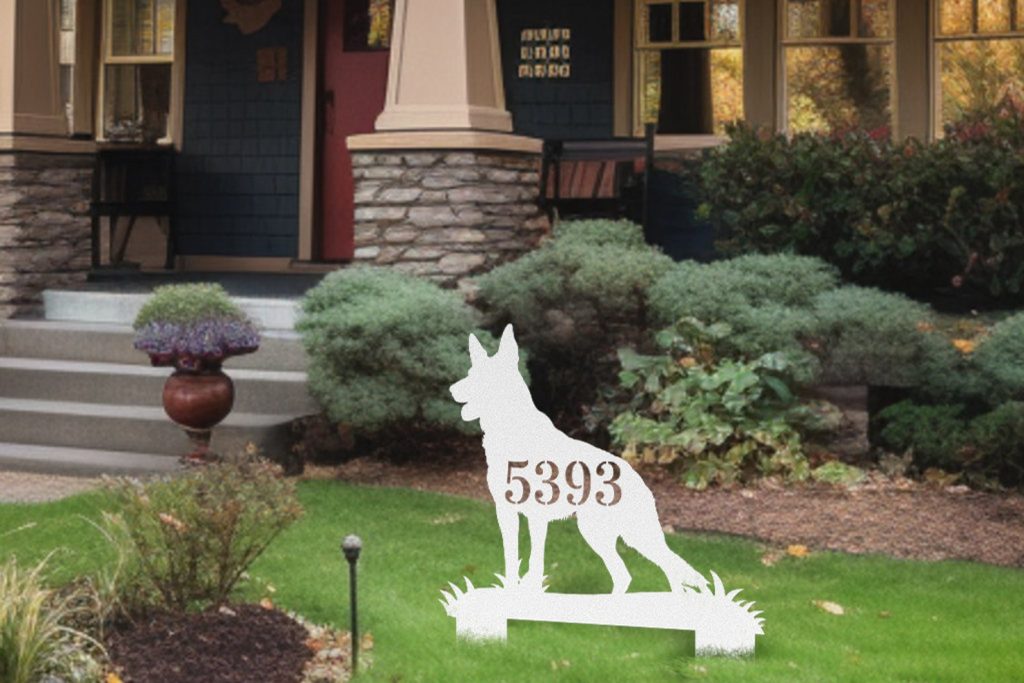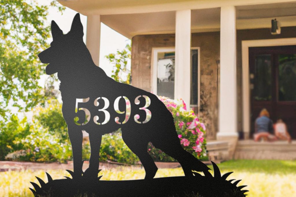 German Shepherd Dog Metal Address Sign – Shaped for Yard