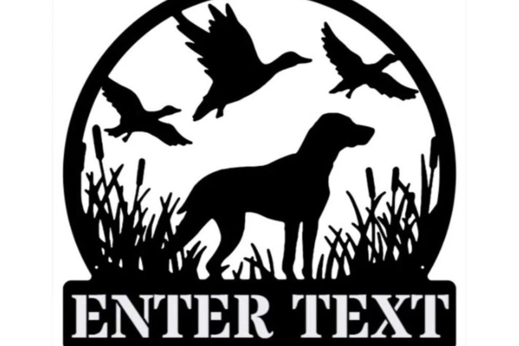 Be the first to review “Hunting Dog with Ducks Metal Decor – Custom Name Sign”