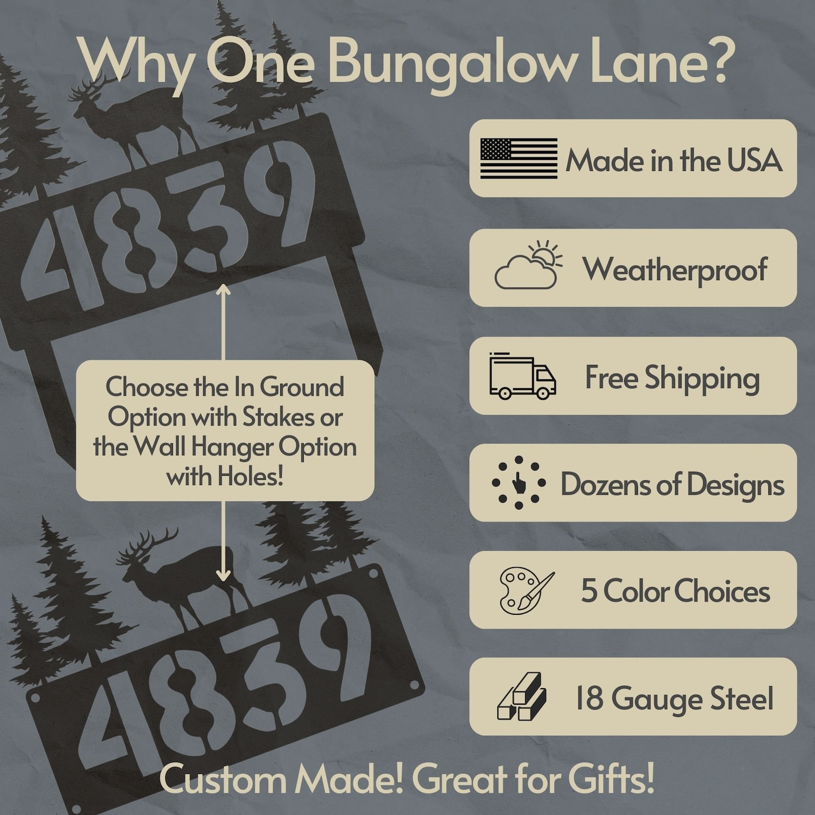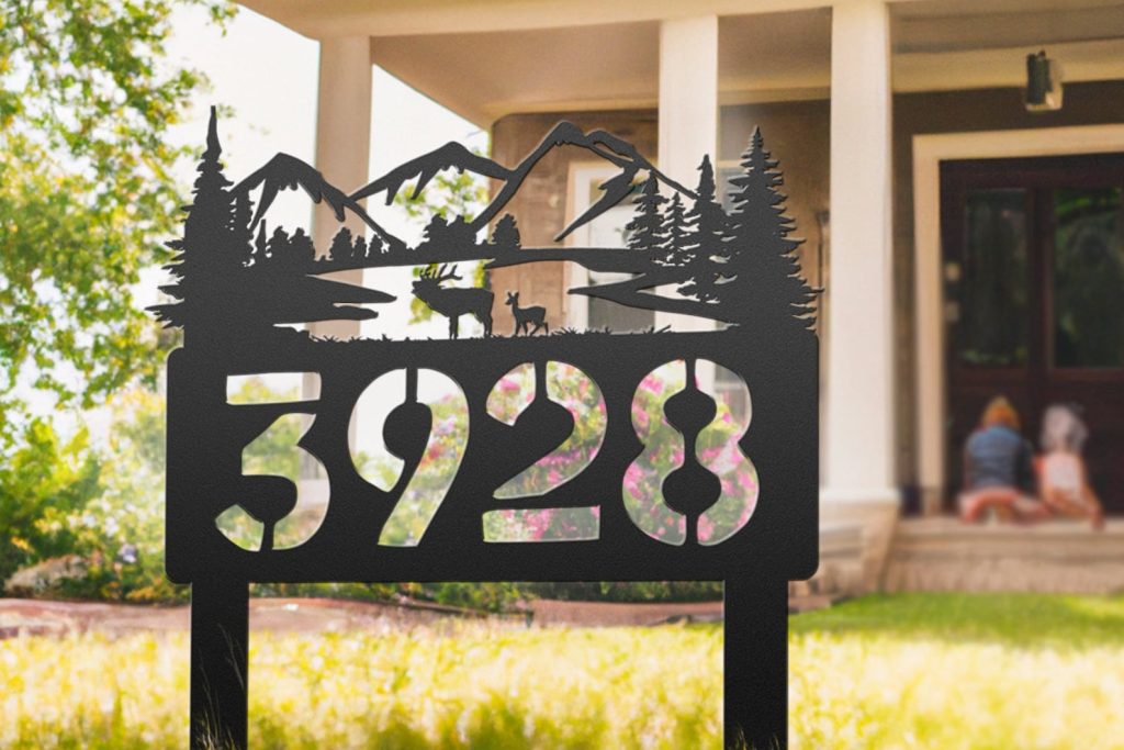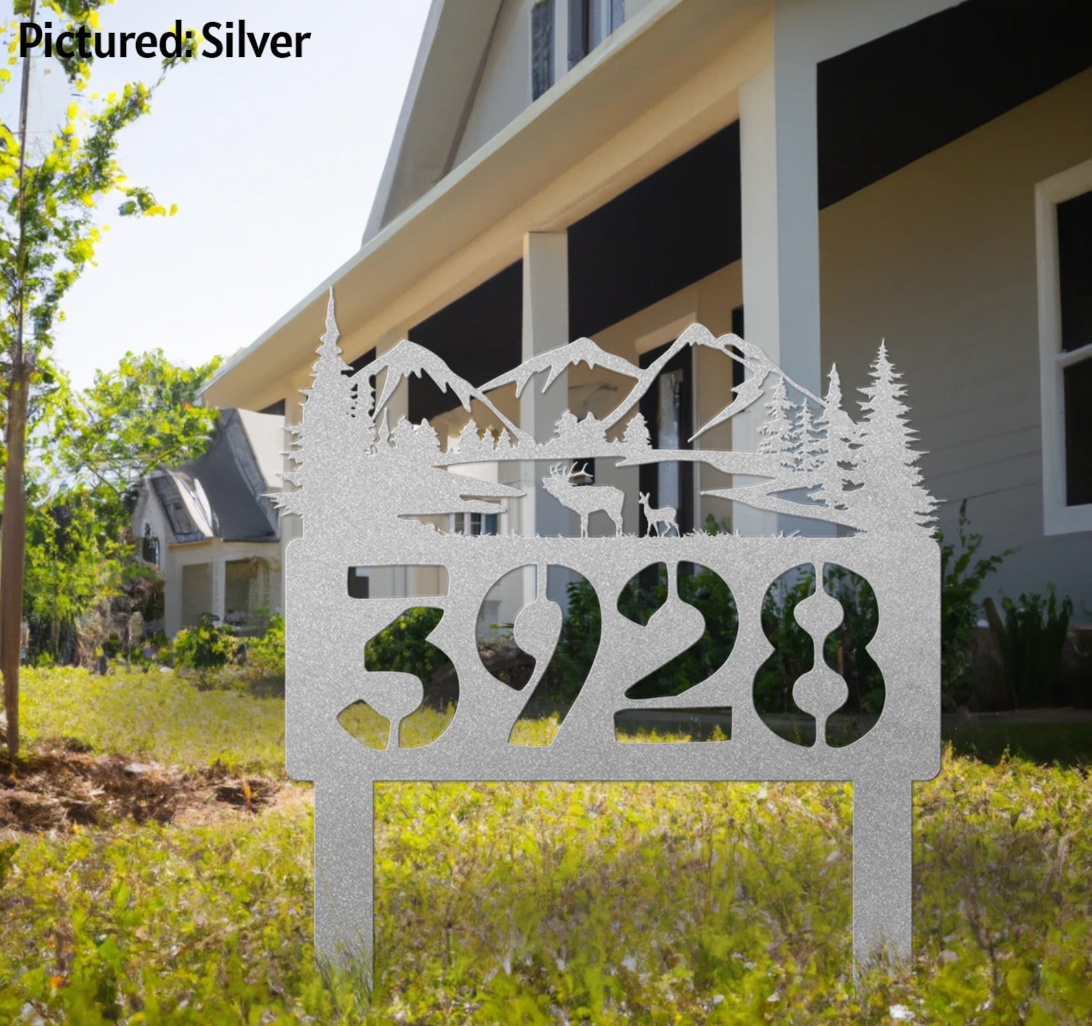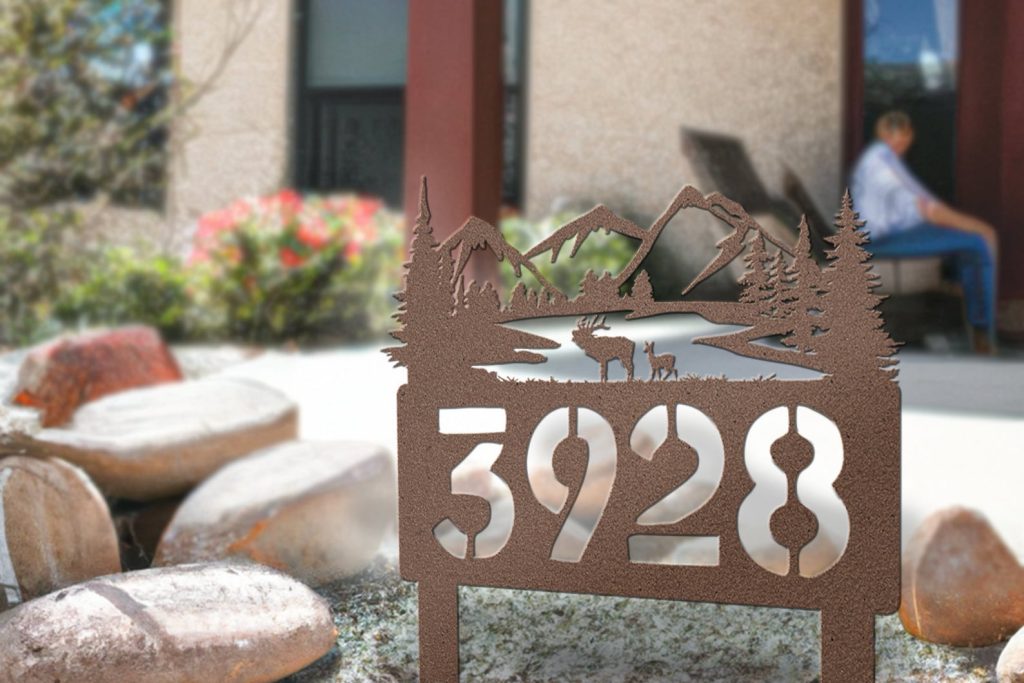 Large Mountain Cabin Metal Address Sign with Wildlife