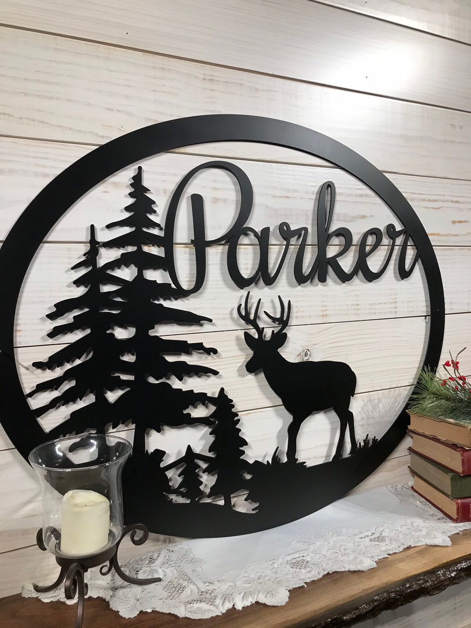 This large metal last name sign can be customized to have whatever Last name or Farm name you chose on it. This Deer Wall art is a great personalized gift for Friends or the Deer Hunting man in your family! Makes a Great Rustic sign or Welcome Sign for your Lodge decor or Cabin decor!