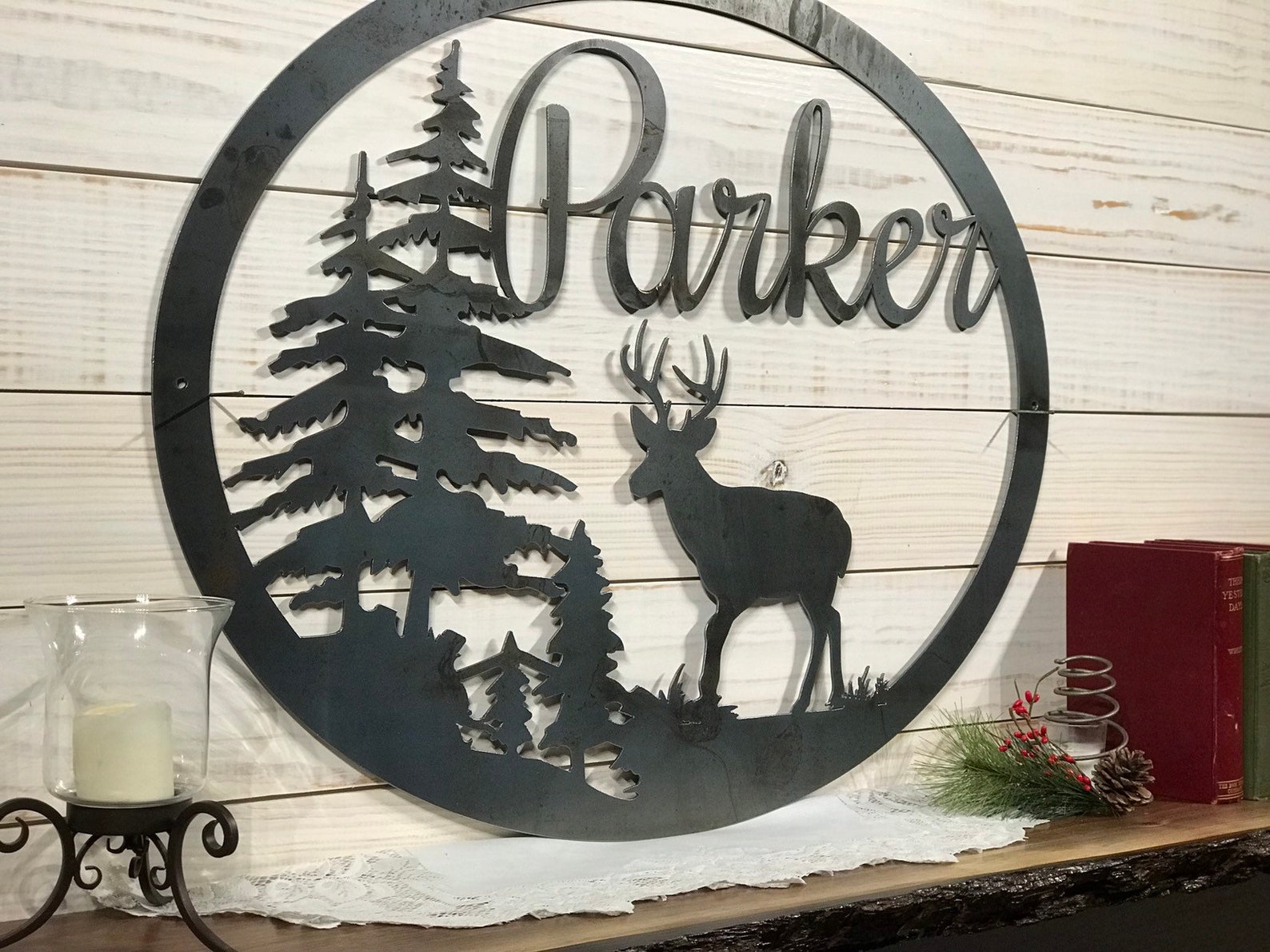 Browse our shop!! We also sell: Napkin holders / welcome signs / wall words / wall art / custom designs / farmhouse signs / farmhouse style decor / hunting signs / monograms / Monogrammed signs / Last name signs / Rustic metal decor / Mountain Scenes / Quote signs / Custom logos / Christmas gift ideas / address signs / hunting lodge sign / farm name sign / family name sign / laundry signs / large welcome signs / custom metal signs / Custom Wall words