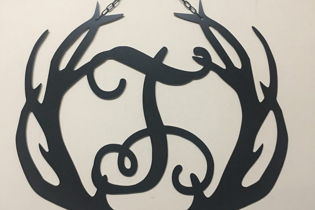 This Antler Monogram Sign can be customized with vine script font or block font, with a variety of color options and mounting options to help you display inside or outside your home. Our unique metal acm material is weatherproof and will last! Read about this material below.