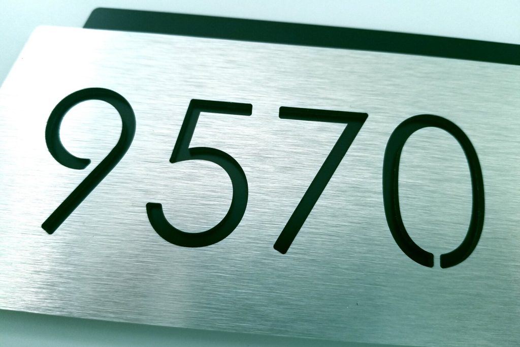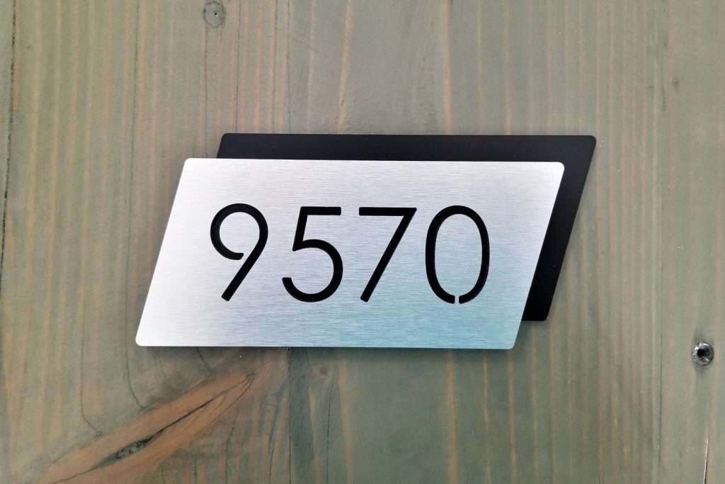 PLEASE NOTE: For numbers containing 5 and more digits, the numbers and/or the letters will be resized to fit into the plaque.