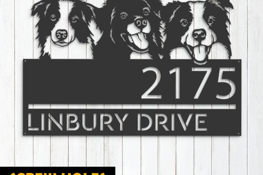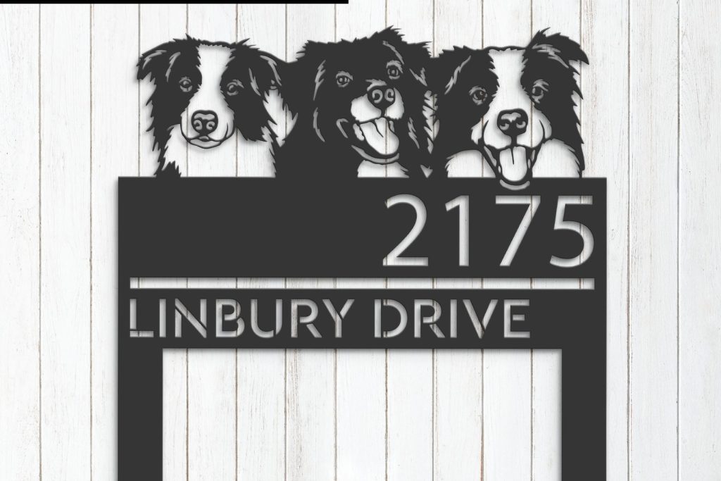 Peeking Border Collie Address Sign – Personal Metal Decor