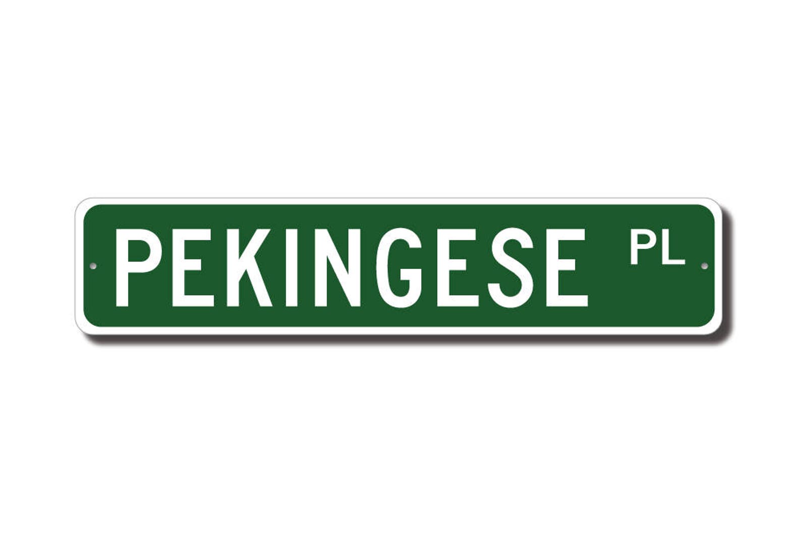 Pekingese lovers check out this awesome street sign! This will make the perfect piece for any Pekingese lover or Pekingese cave. Made of premium aluminum it will stand the test of time. This sign will look great in any room, garage, barn or office! Get this sign for your favorite friend that loves a Pekingese !