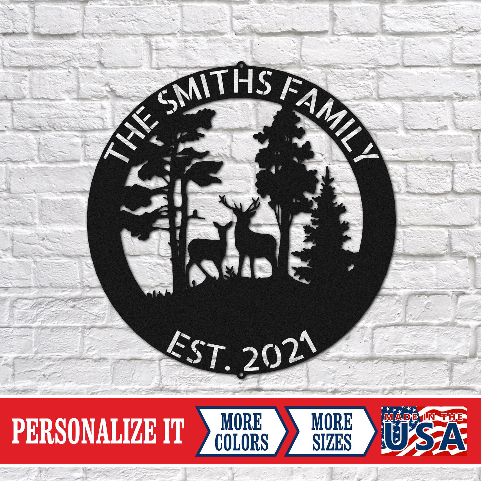 Whether you are a wildlife enthusiast, a lover of the great outdoors, or seek to add a touch of nature to your space, our Metal Sign with a silhouette family of deer and forest backdrop will evoke a sense of peace and serenity. Order now and bring the beauty of nature into your home, creating a cherished atmosphere that celebrates the wonders of the wilderness.