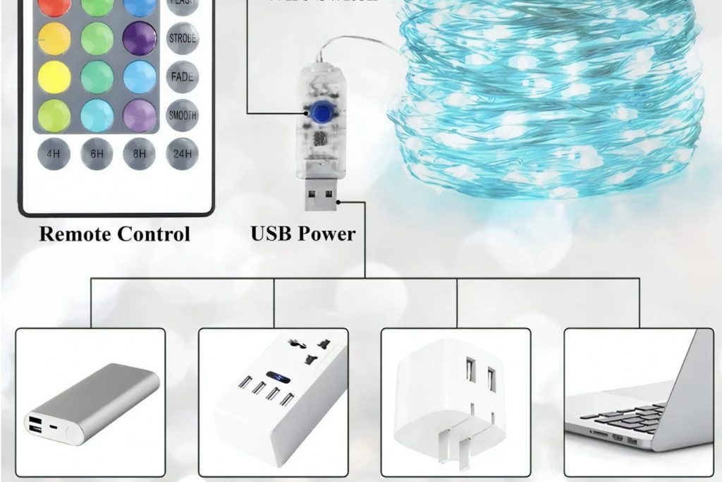 – Remote control: You can use the remote to turn the lights on and off, change the color to one of 12 vibrant colors, adjust brightness, cycle through the colors, and set a timer. The remote is battery-operated, we do not provide built-in batteries for the remote.