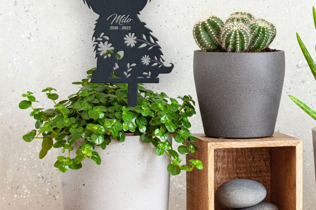 Do you have a beloved pet that you want to commemorate forever? Our personalized pet memorial metal garden stake offers the perfect way to do just that. This beautiful, rustic and hand-made garden stake will be a unique feature in your outdoor space while also honoring your lost pet.
