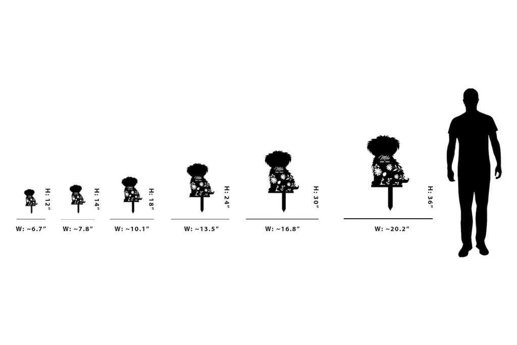 The stake features a unique design with Maltipoo silhouette, a name of your choosing, and date for you to add a special memento. It is made from a sturdy steel with powder coated.