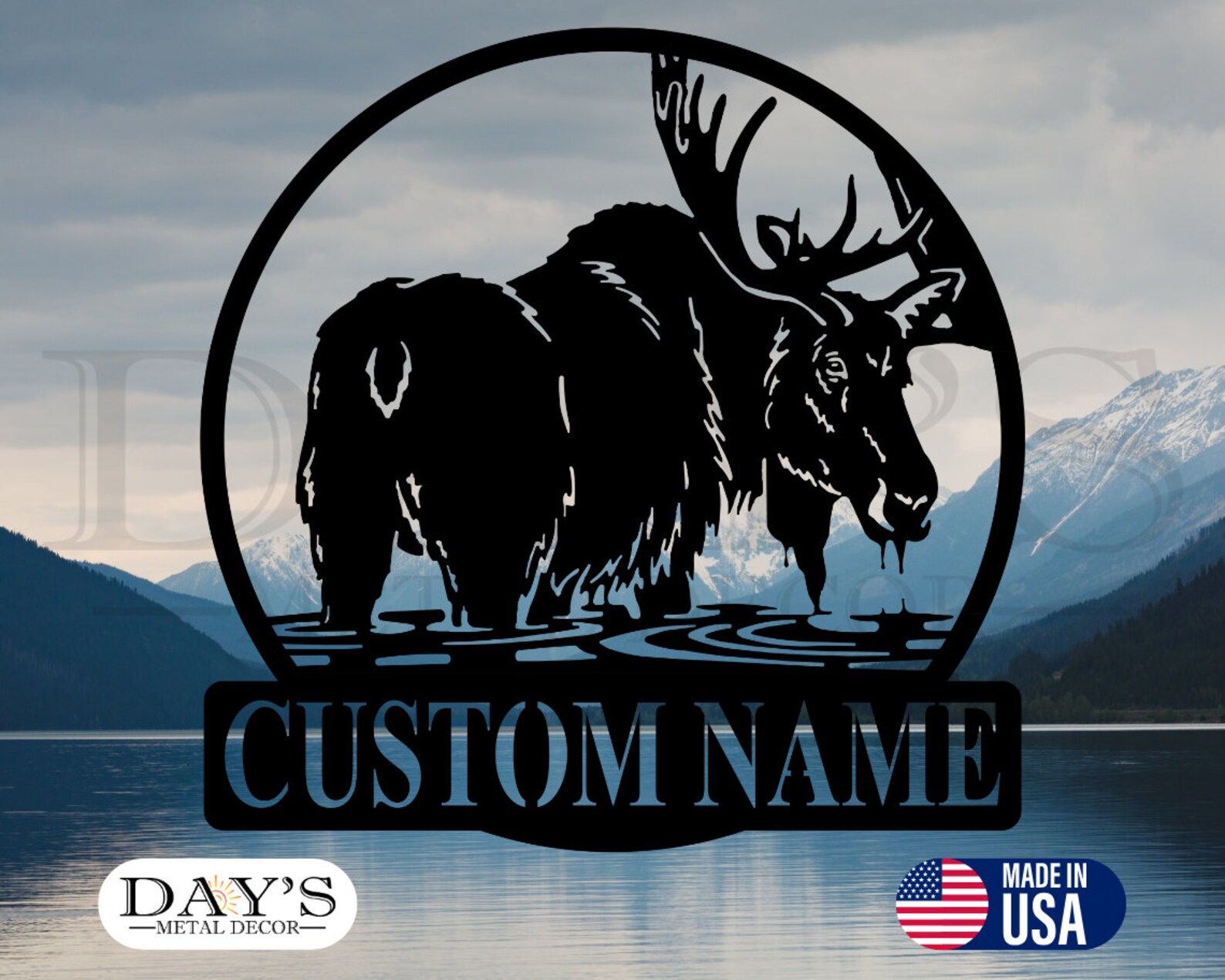 Moose In Lake Water Personalized Metal Sign, Personalized, Home Decor, Moose Signs, Last Name Sign, Outdoor Sign, Outdoor Name Sign, Moose