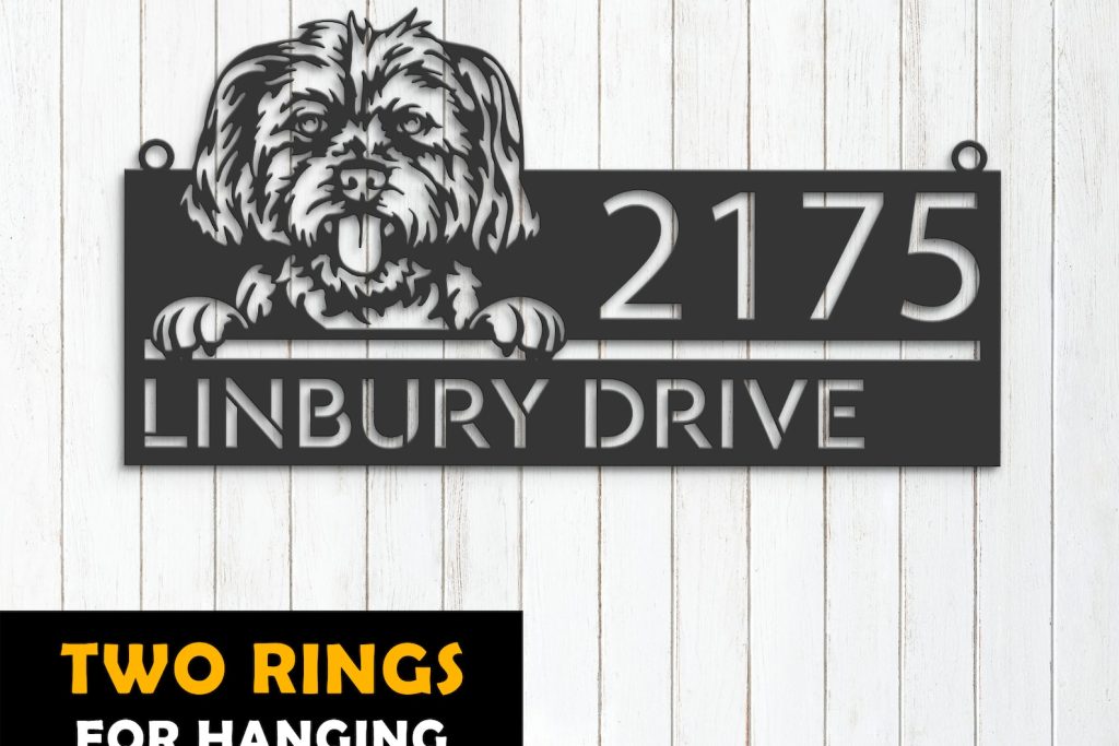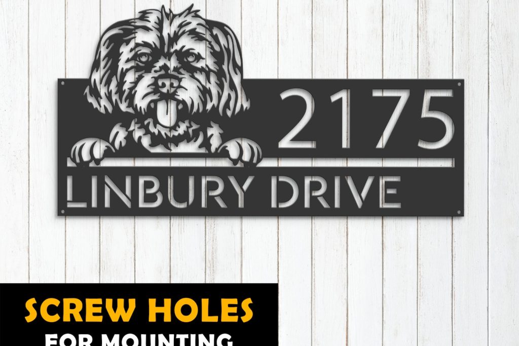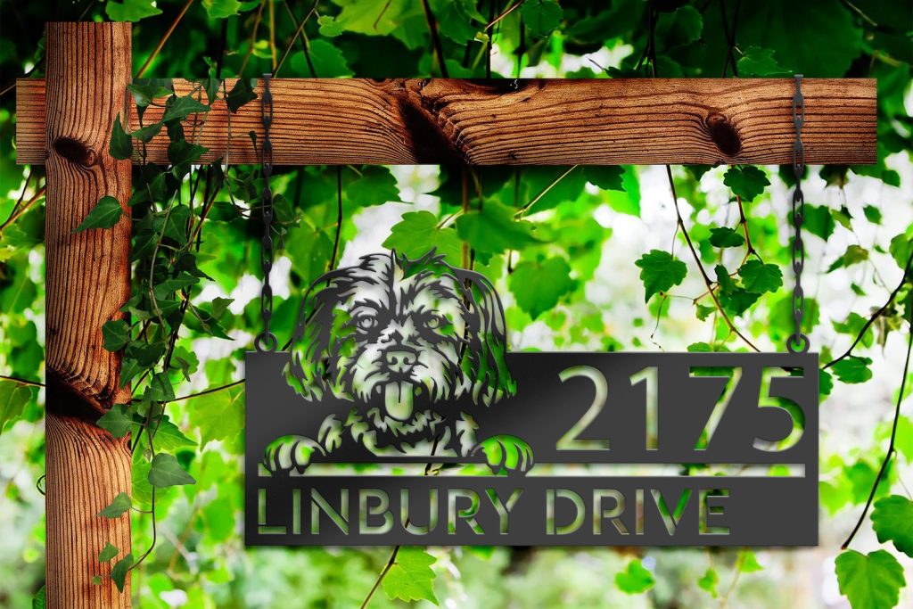 Personalized Morkie Dog Metal Address Sign with Yard Stake