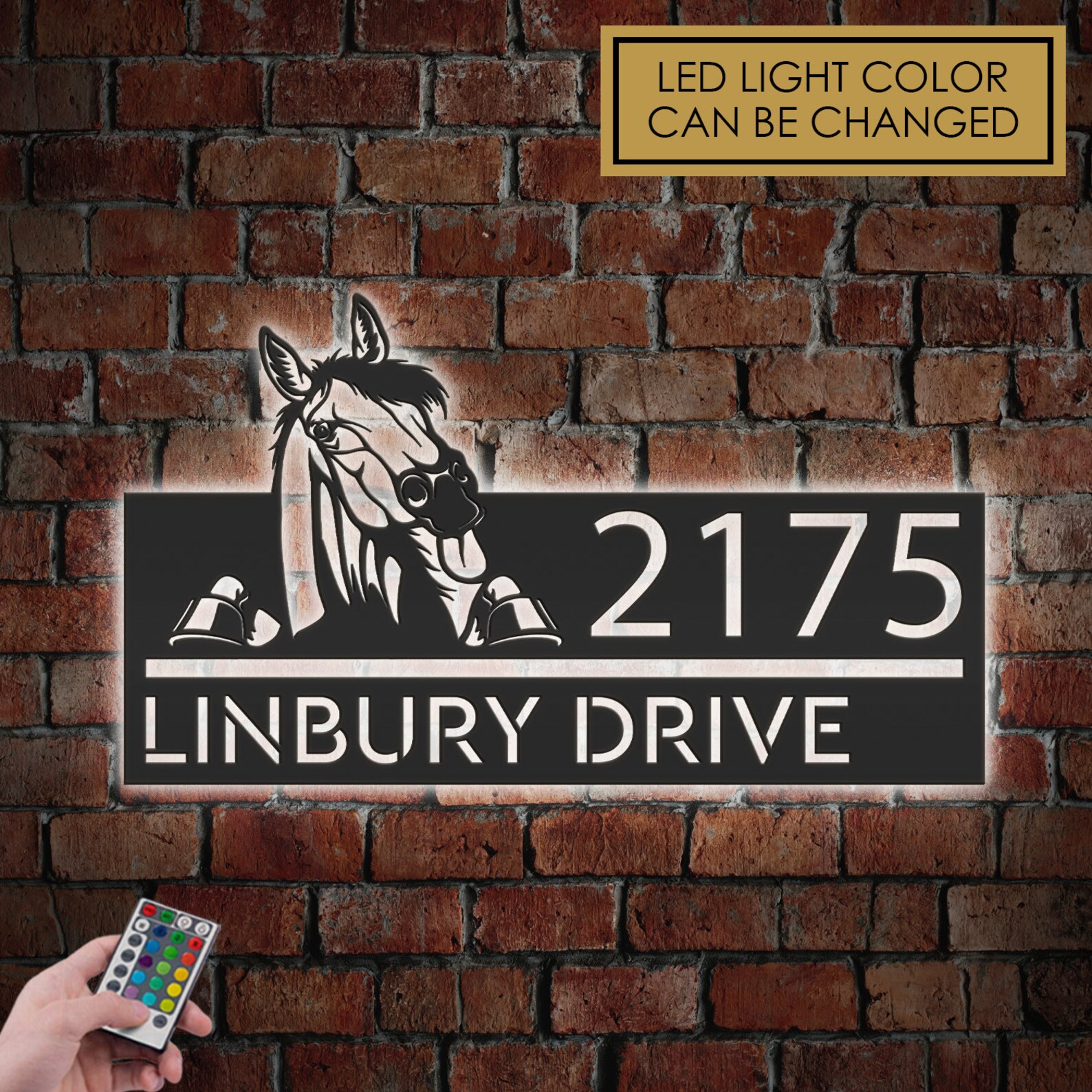 Be the first to review “Personalized Peeking Horse Metal Address Sign with LED”