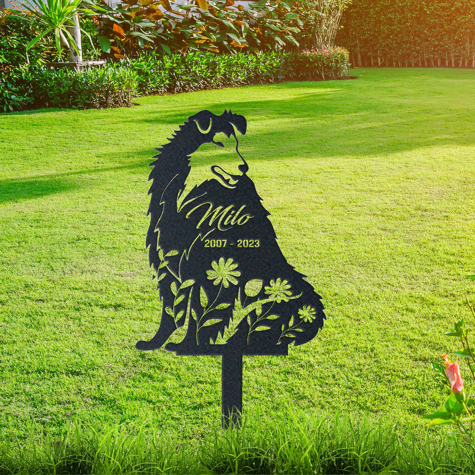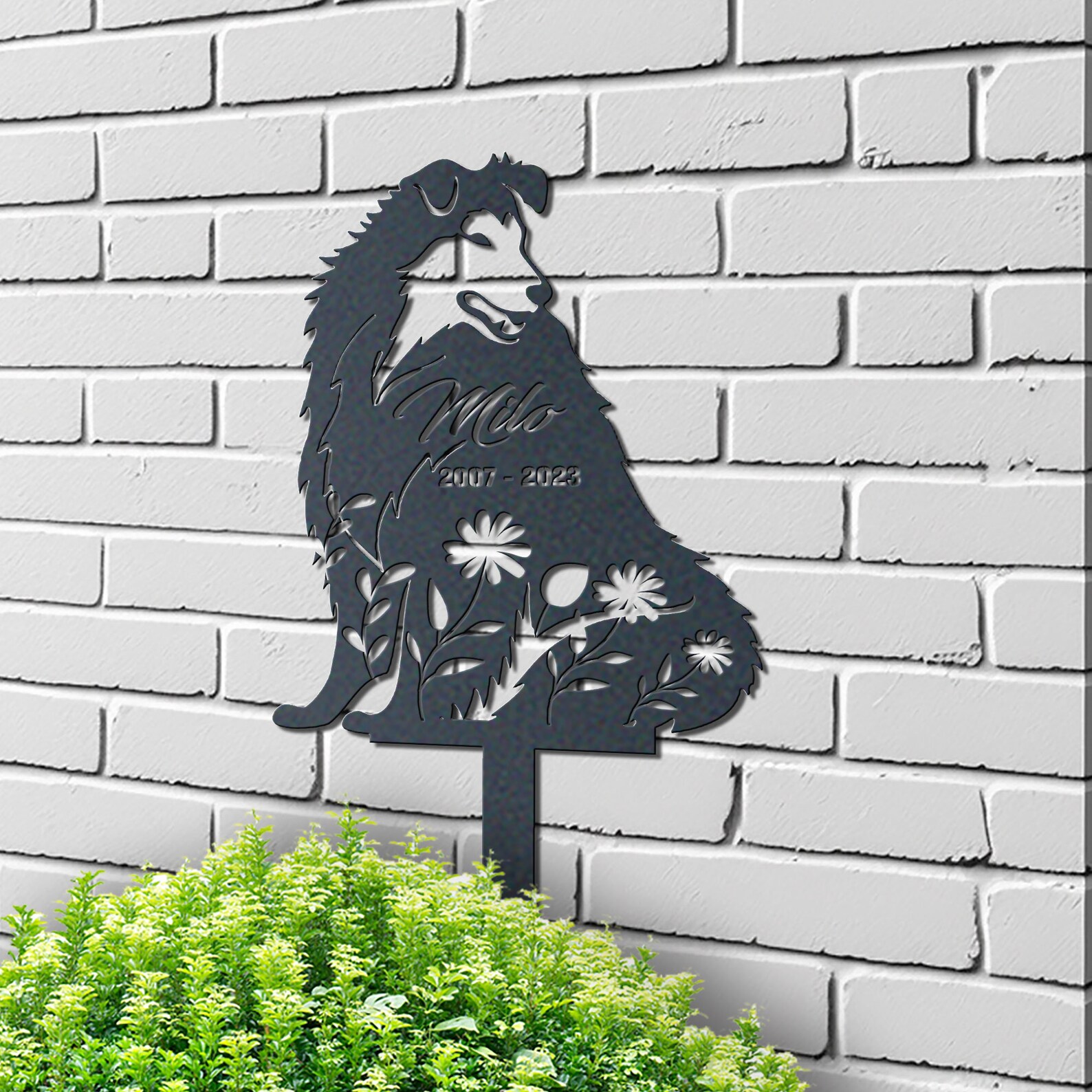 The stake features a unique design with Rough Collie silhouette, a name of your choosing, and date for you to add a special memento. It is made from a sturdy steel with powder coated.