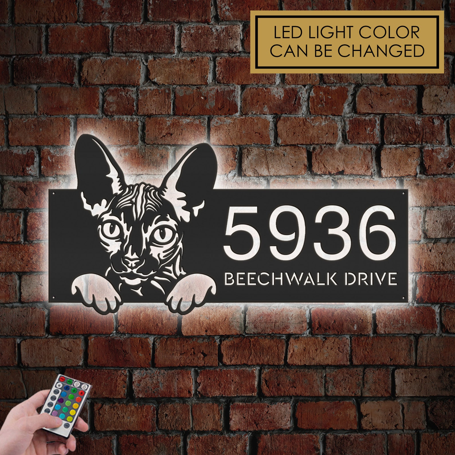 Be the first to review “Personalized Sphynx Cat Metal Address Sign with LED”