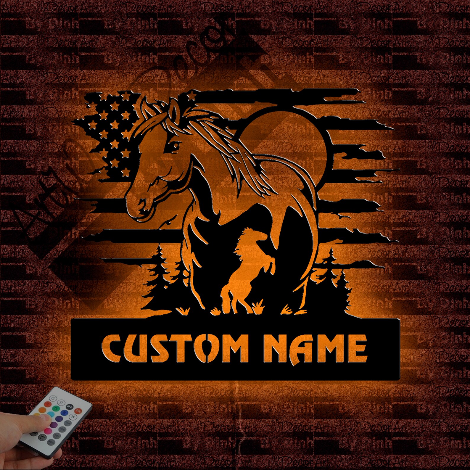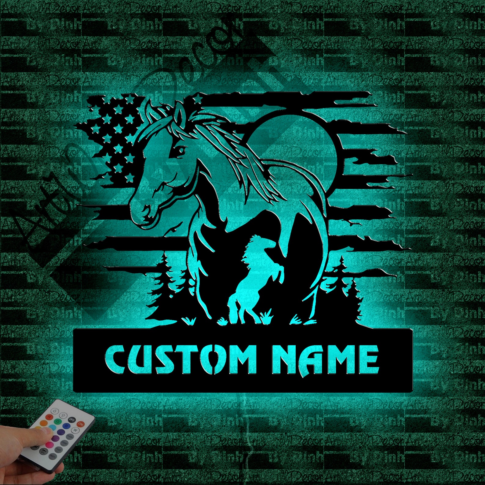 Be the first to review “Personalized US Horse Metal Wall Art with LED – Custom Decor”