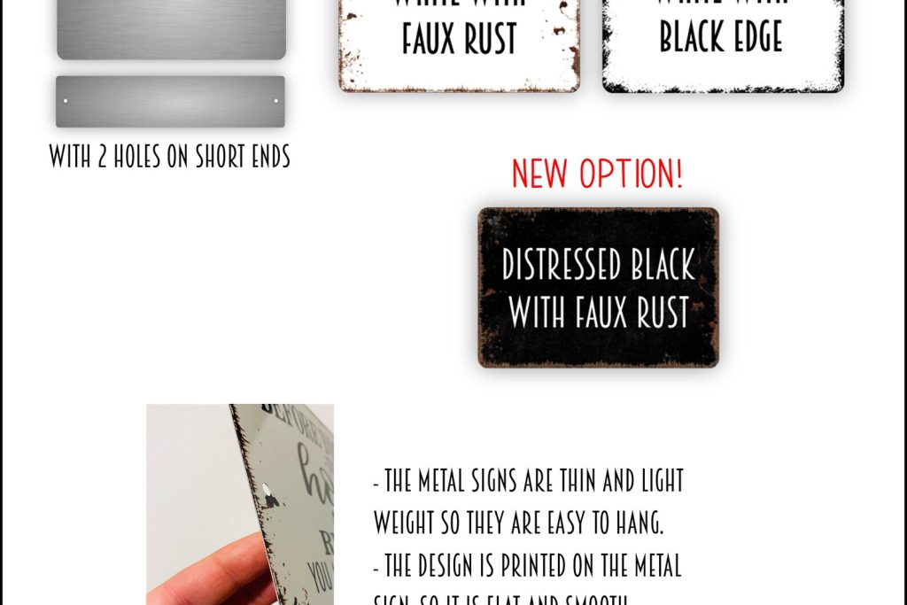 NOTE: All rustic add-ons including any rust, distressed marks, etc. are printed on and not real, so the signs are smooth to the touch.